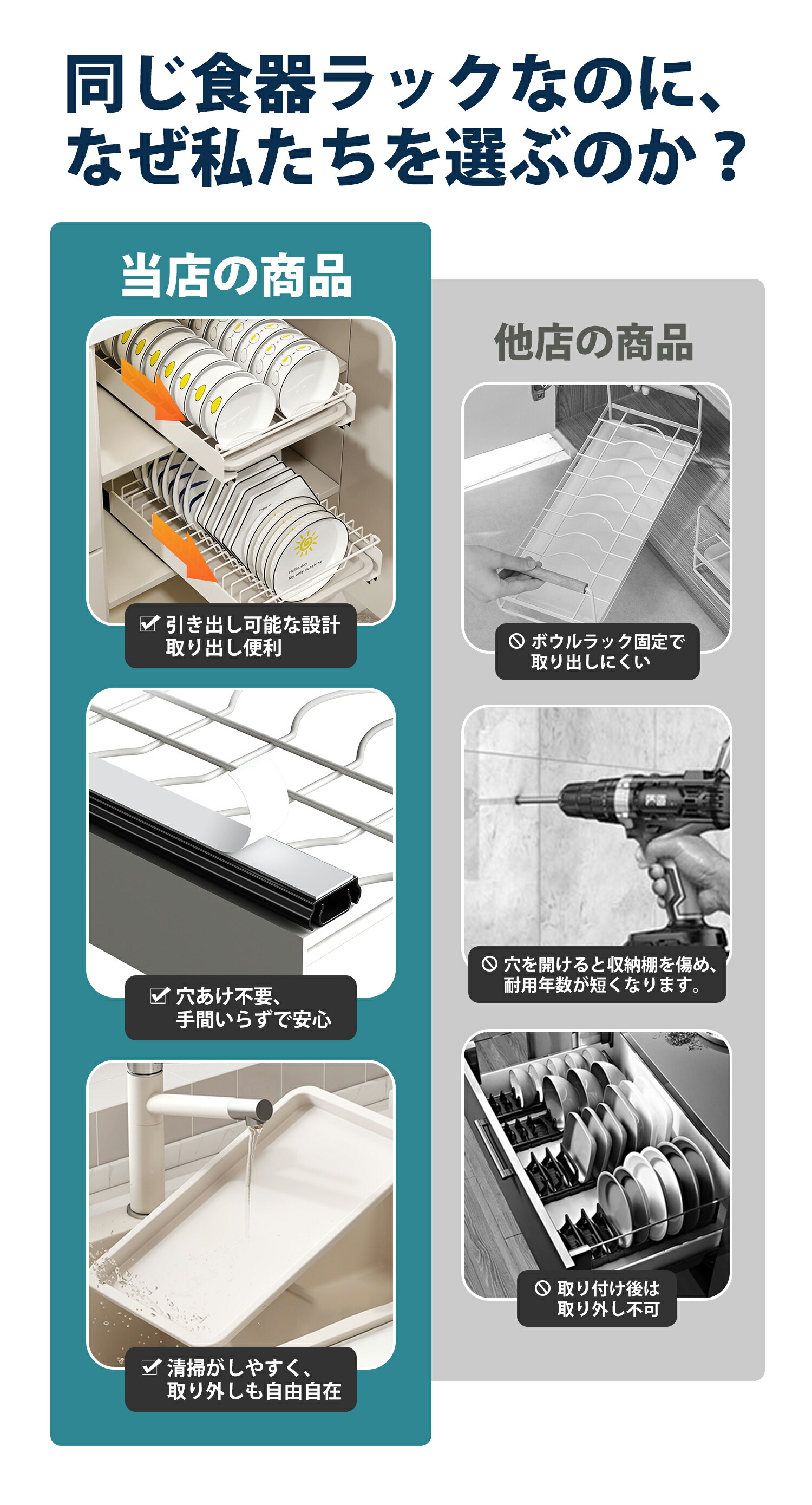 ※濡れた食器を収納する際は風通しの良い場所に設置してください。