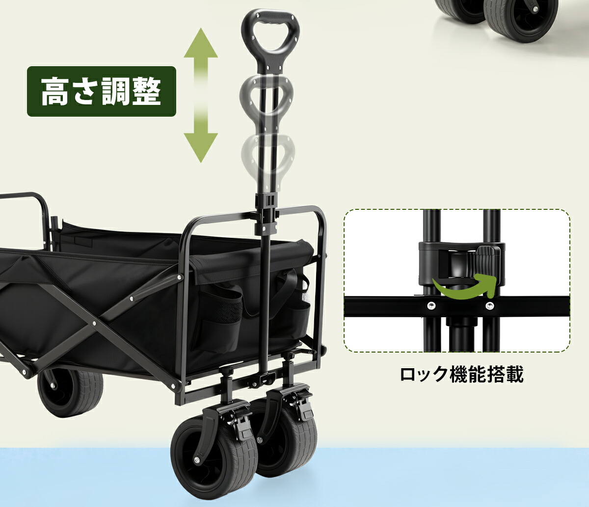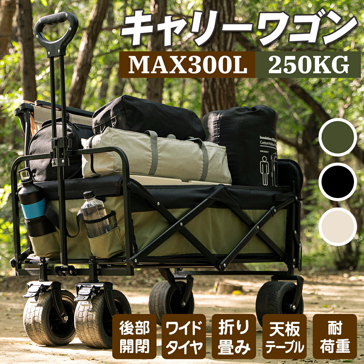 アウトドアワゴン キャリーワゴン 後ろ ワゴン単体 専用テーブル天板付き ブラック ベージュ グリーン