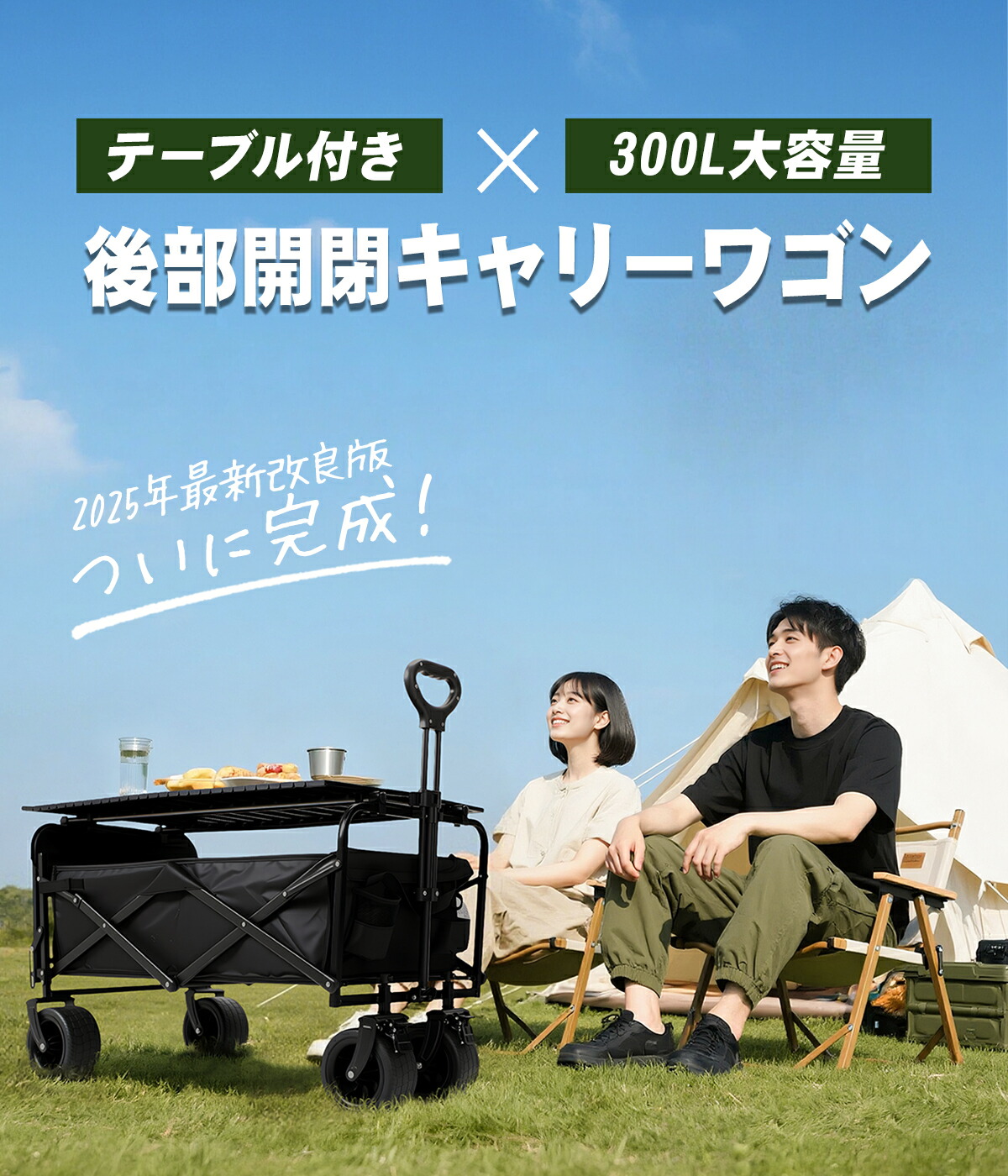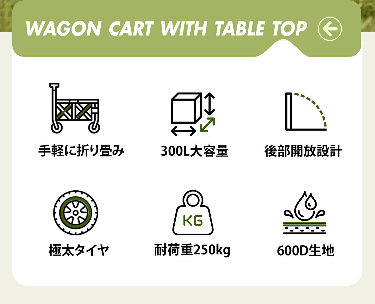 後部展開型 アウトドアキャリーワゴン 300L テーブルトップ付き