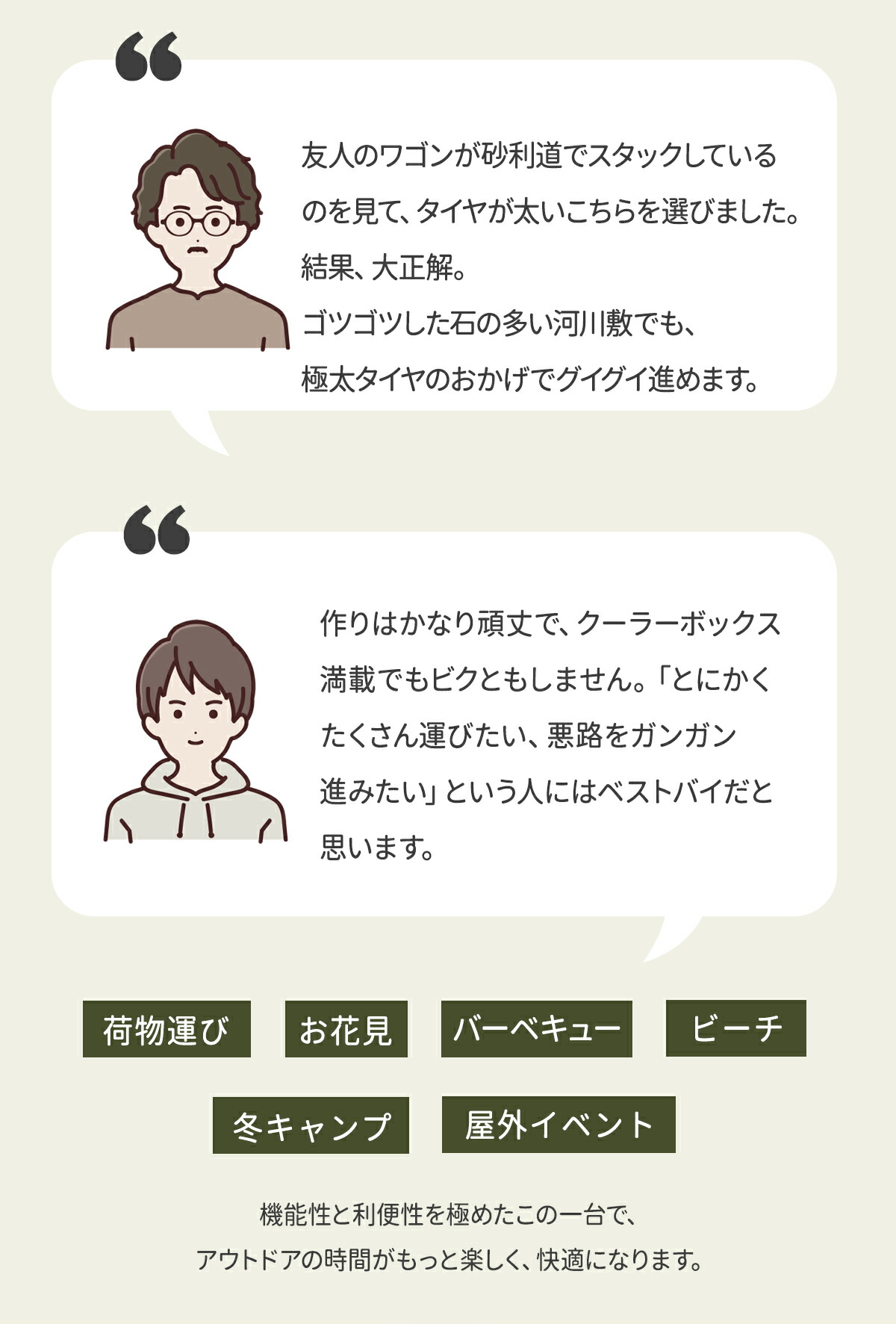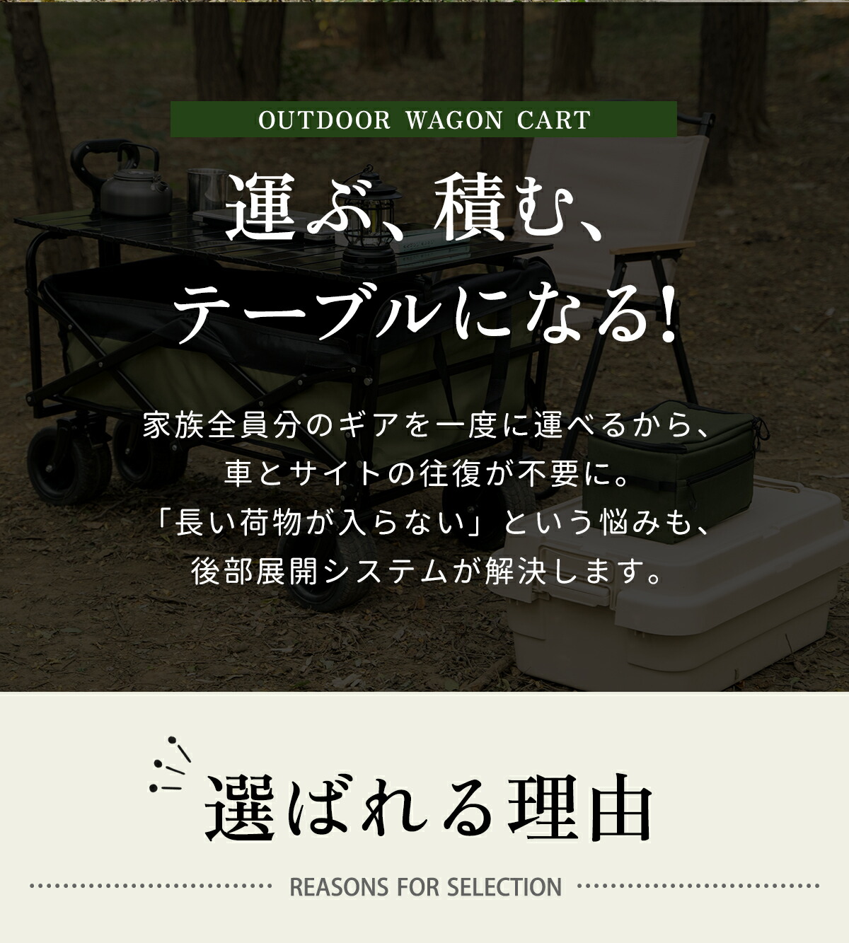 キャンプやバーベキューの最大の悩み「荷運び」を劇的にラクにする、進化系アウトドアワゴンです。