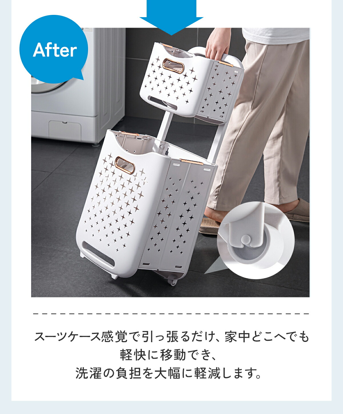 【洗濯物の移動が楽になるハンドルとキャスター付き】