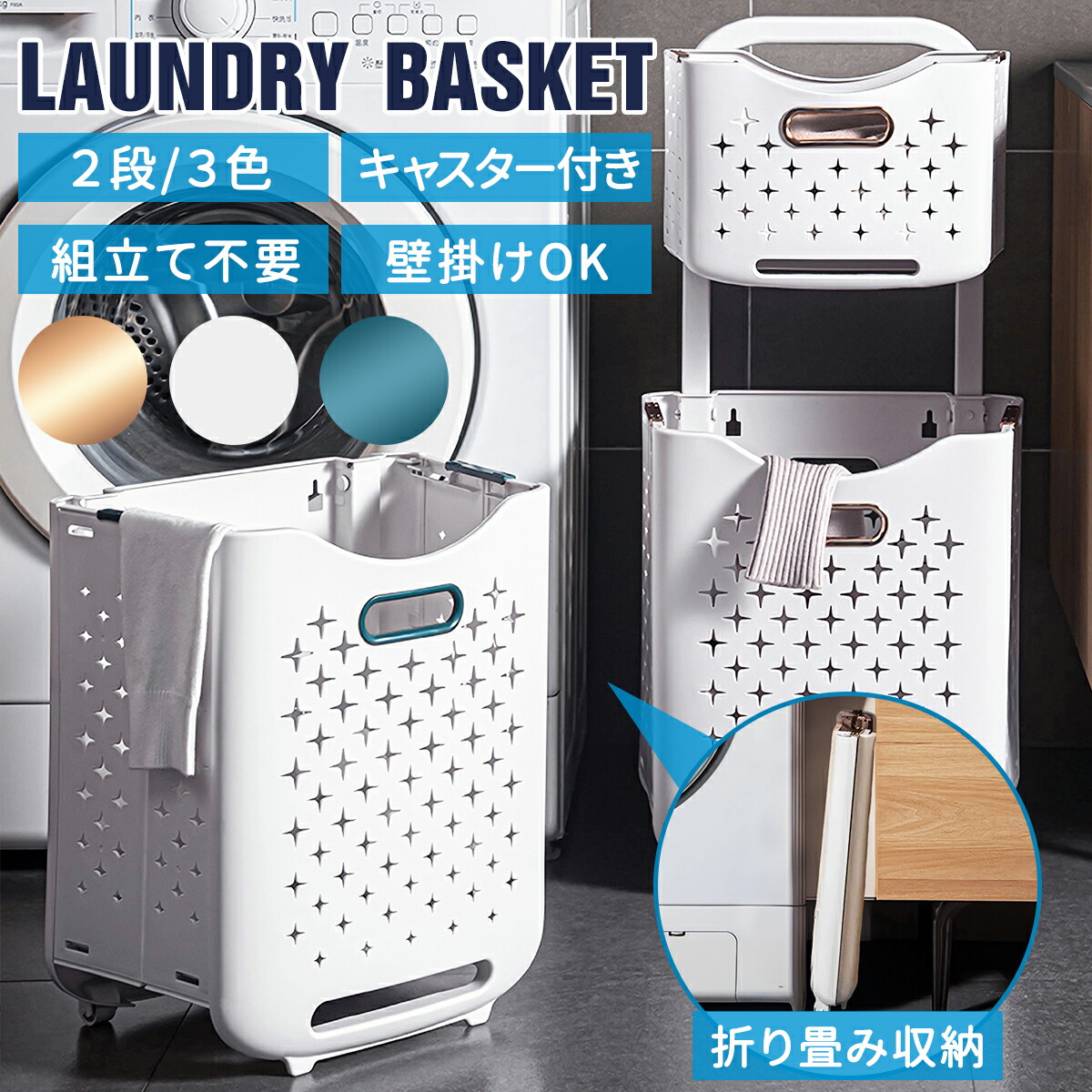 ランドリーバスケット 折りたたみ 洗濯 ゴールド グリーン ホワイト