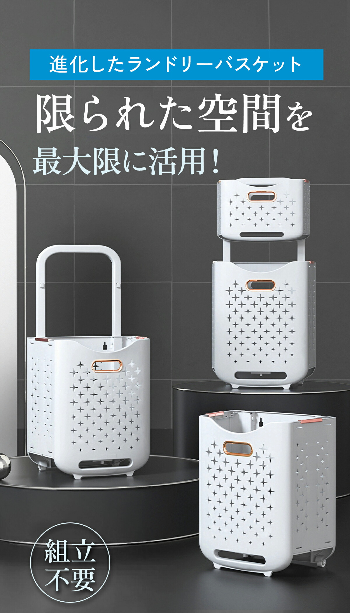 ランドリーバスケット 折りたたみ 洗濯カゴ キャスター 2段 スリム 洗濯物入れ 大容量 壁掛け 耐荷重5kg 大きめ メッシュ 縦型 ランドリー収納 おしゃれ お風呂 新生活 収納用品 洗面所