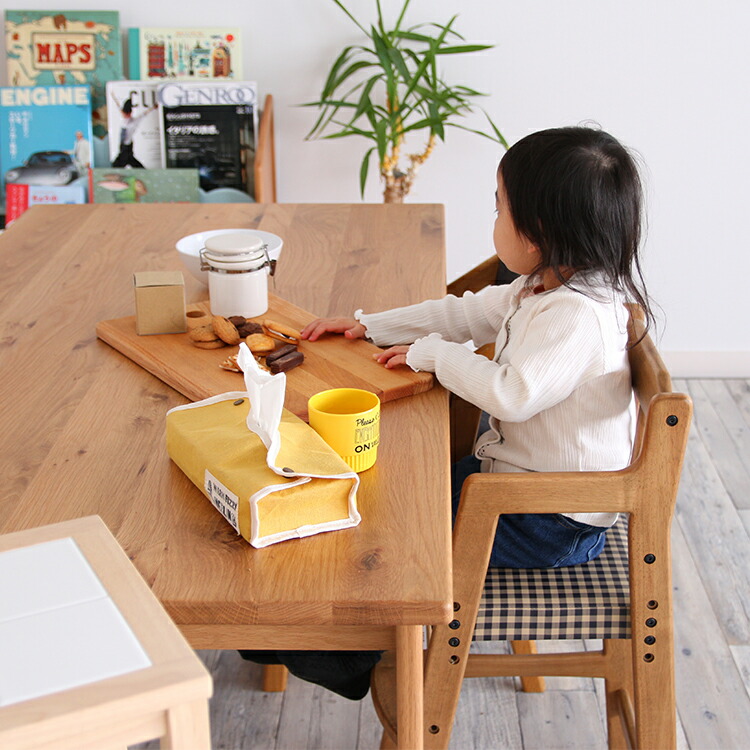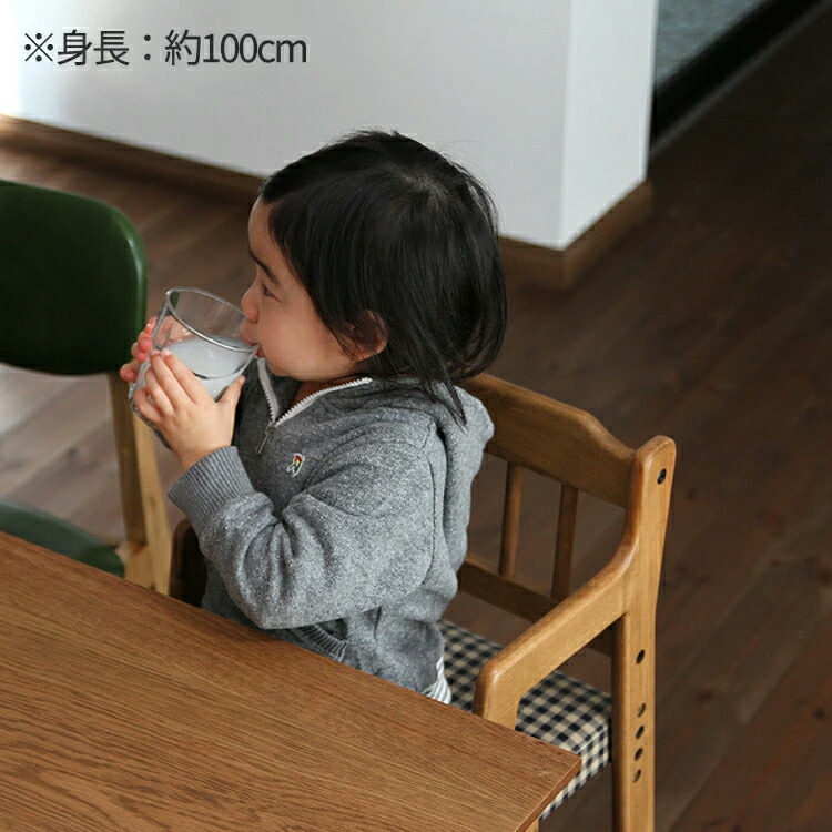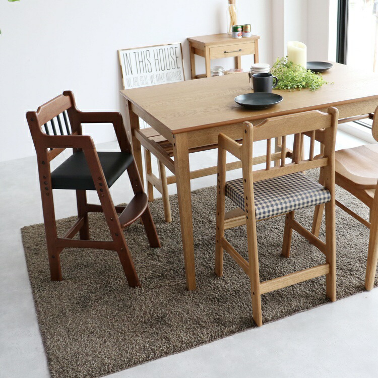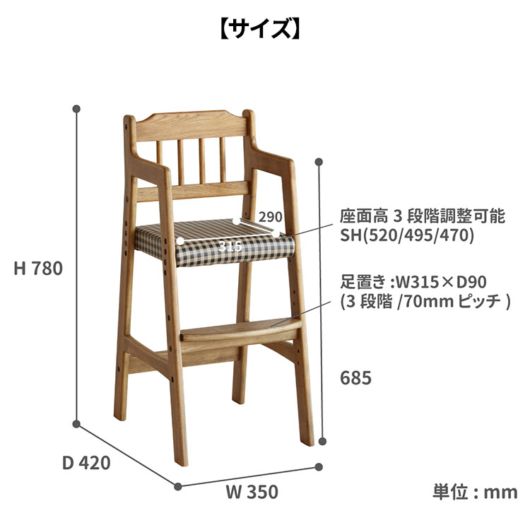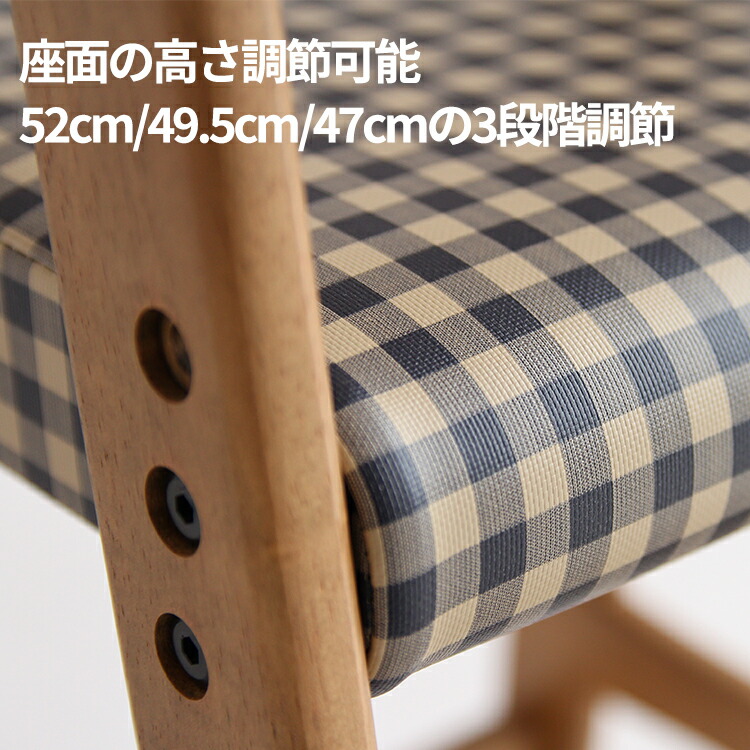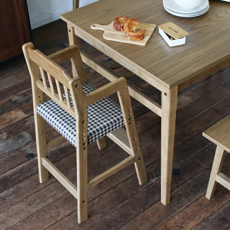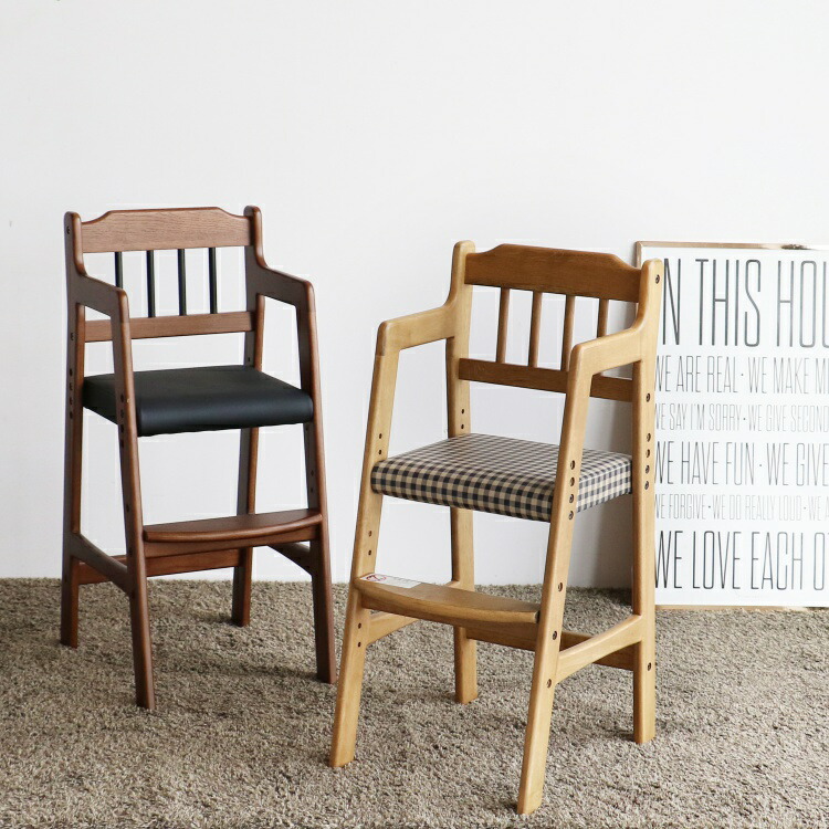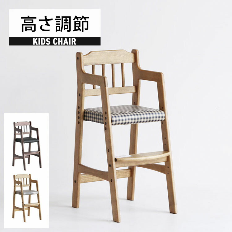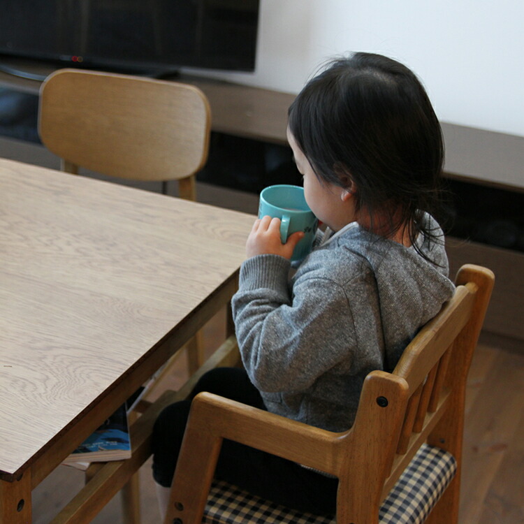 キッズチェア ダイニング ハイチェア 座面チェック柄 ブラウン色