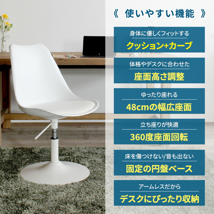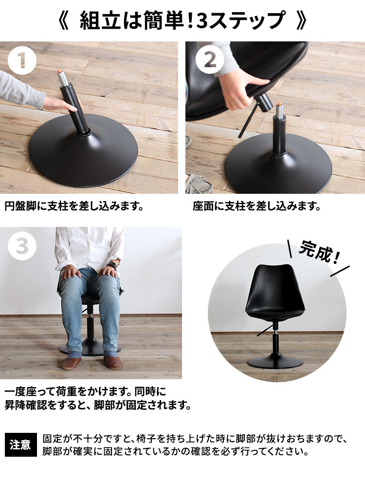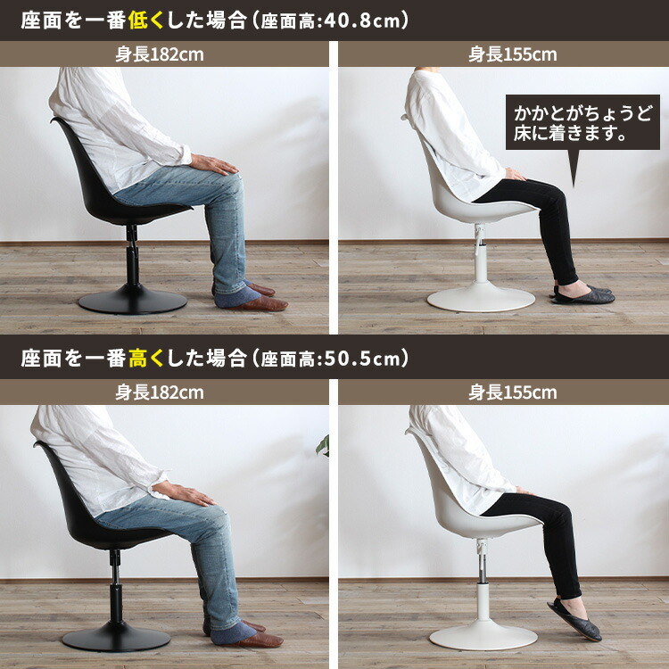 ダイニングチェア 回転 低め キャスタ 1脚 2脚セット 4脚セット ブラック色 ホワイト色