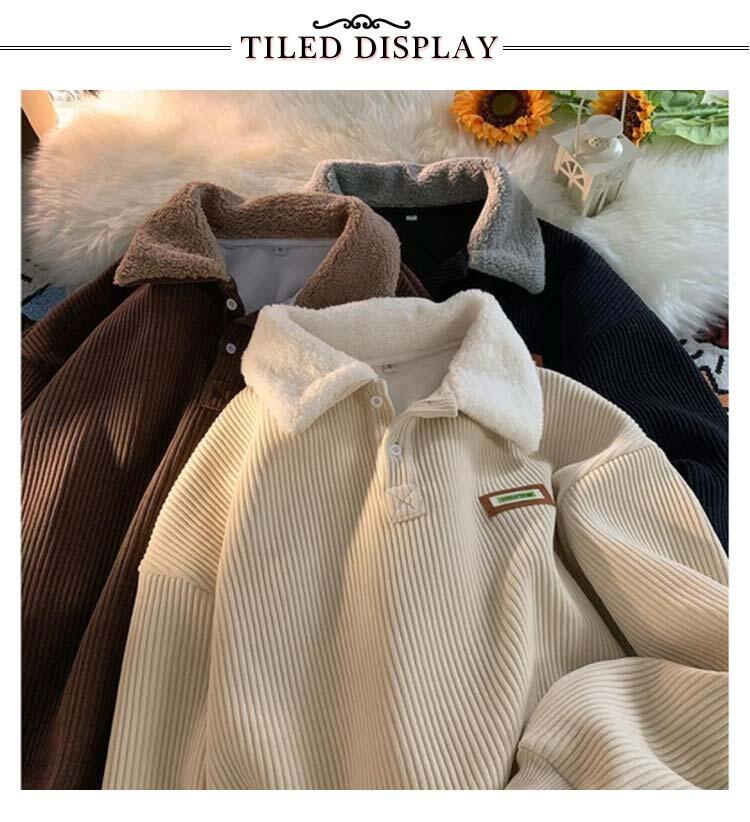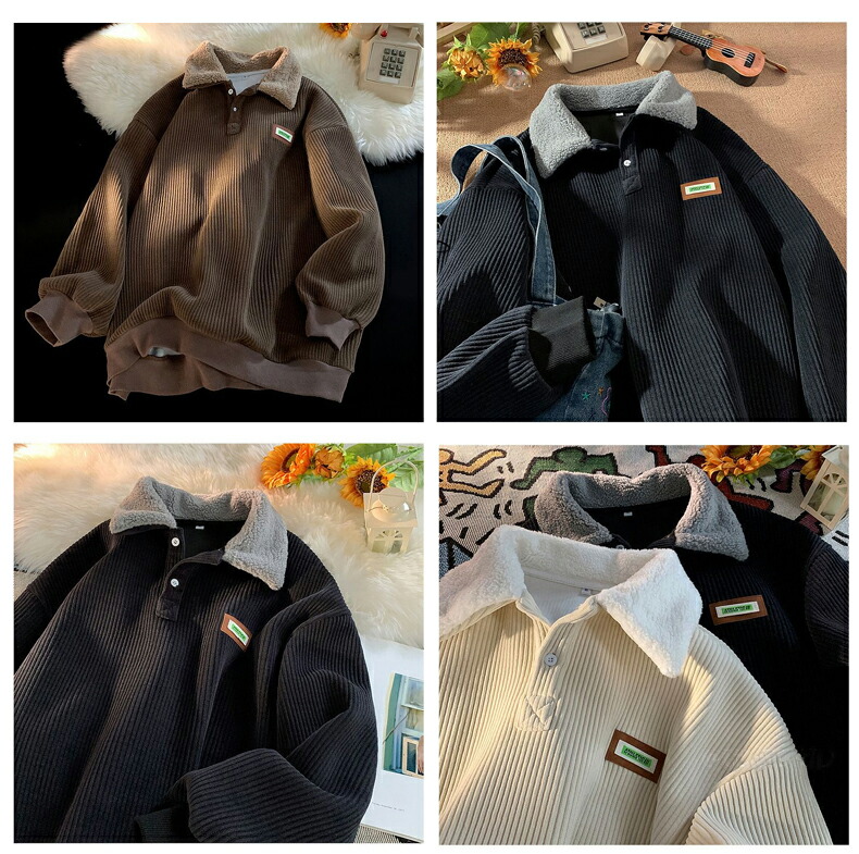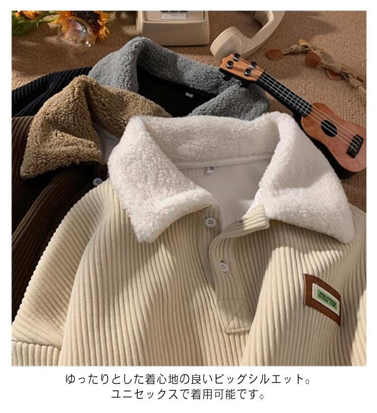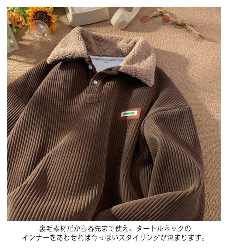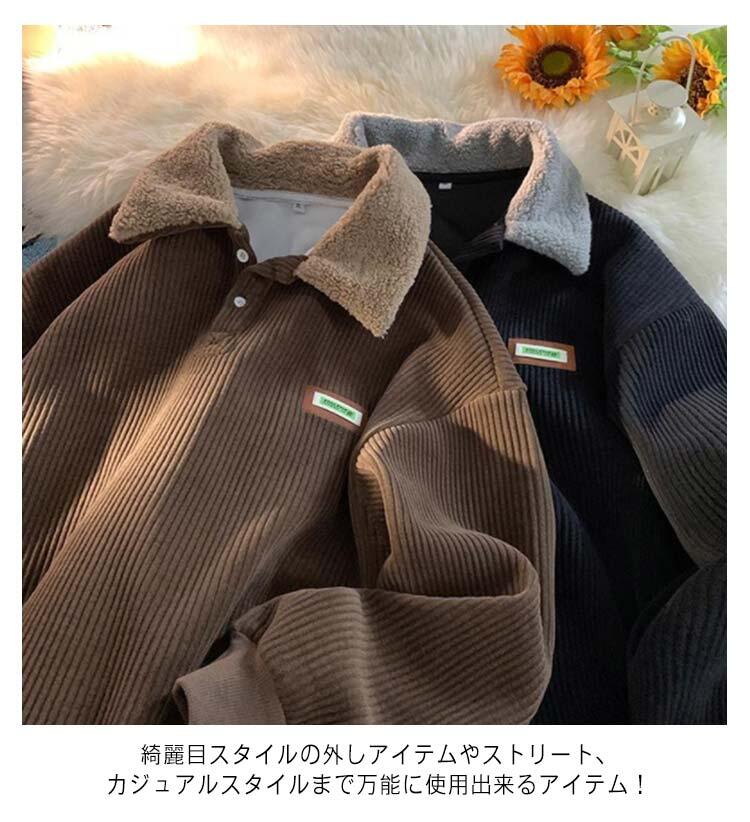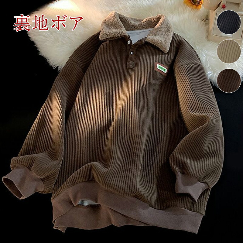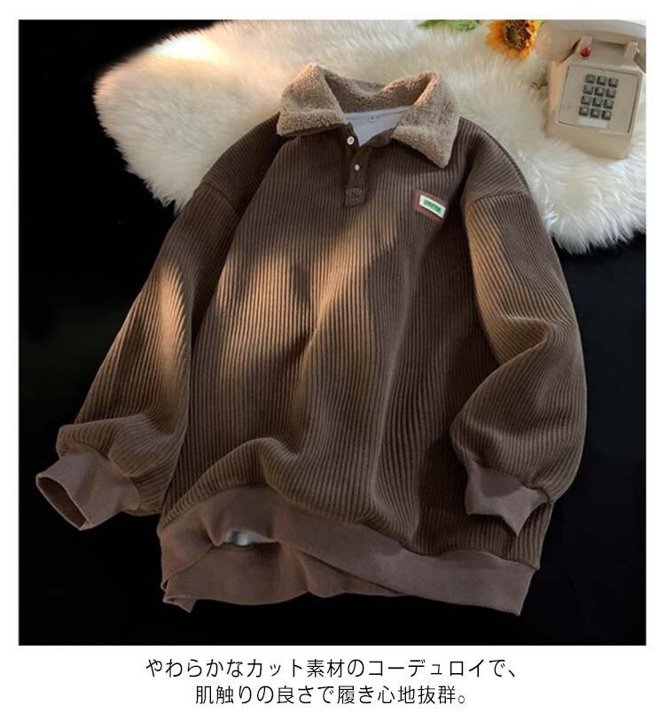 メンズ スウェット コーデュロイ 裏起 トップス スウェット トレーナー 新作 ベージュ ブラウン ブラック M L XL