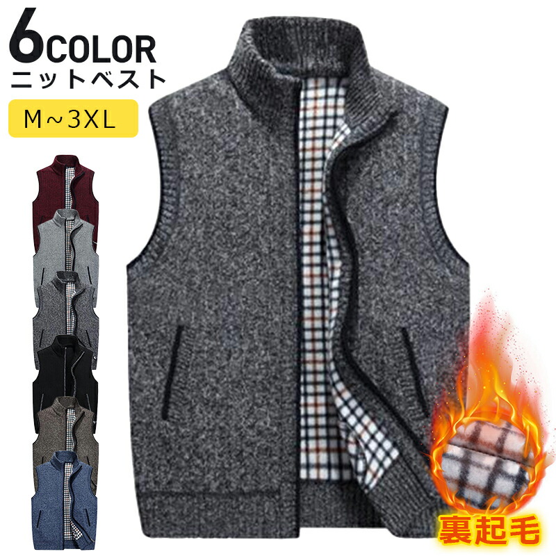 ニットベスト メンズベスト 裏起毛 厚 メンズファッション 豊富 ブラック ブルー ダークグレー コーヒー色 ライトグレー ワインレッド M L XL 2XL 3XL