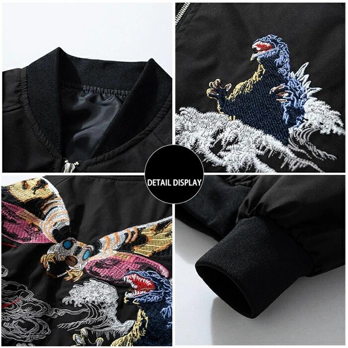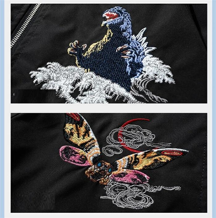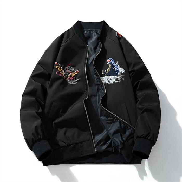 リバーシブル 大きいサイズ 刺繍 サテン 春秋冬 ジャンバー 黒 メンズ ウルフ サ 和柄 光沢 アウター ブルゾン サテンジャケット