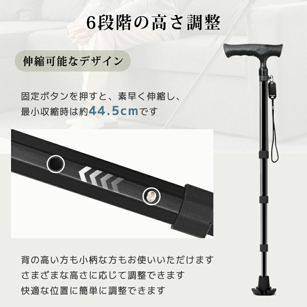 ステッキ 杖 軽量 つえ 3点杖 自立 1本 2本