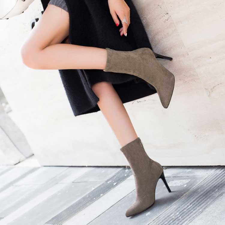 ピンヒール ショートブーツ ブーティ 靴 期間限定割引クーポン ブラック カーキ 35(22.5cm) 36(23cm) 37(23.5cm) 38(24cm) 39(24.5cm) 40(25cm) 41(25.5cm)
