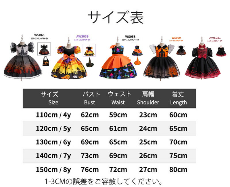 2025年新品追加 ハロウィン 衣装 ホビー 人気 AWS039+ブラック帽子 WS058+オレンジ帽子 WS061+手提げ WS069+バッグ AWS081 110CM 120CM 130CM 140CM 150CM