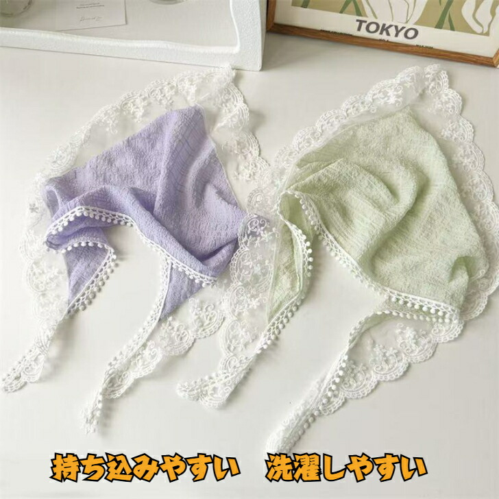 ポッキリ バブーシュ 三角巾 レース シアー バンダナ スカーフ 髪飾り 髪アクセサリー 軽いヘアバンド レース生地 おまけ付き ワイルドカチューシャ ピクニック 日焼け防止