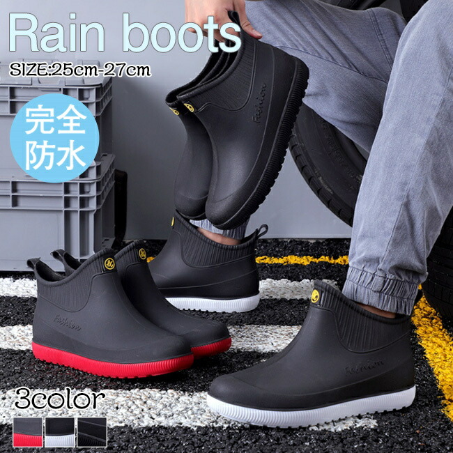 新作 レインシューズ メンズ レインブ 靴 続々登場 25cm(FR40) 25.5cm(FR41) 26cm(FR42) 26.5cm(FR43) 27cm(FR44) ブラック ブラック×ホワイト ブラック×レッド