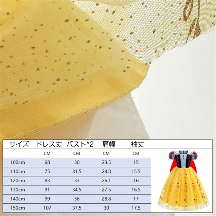 新作白雪姫 ドレス 子供用 ハロウィン コスプレ 変装 仮装 ワンピース 特集 100cm 110cm 120cm 130cm 140cm 150cm