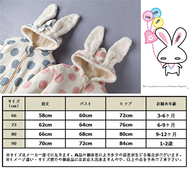 ウサギ トッド柄 新生児 男女兼用 カ キッズ ベビー マタニティ 人気 ピンク ブルー 66cm(3-6ケ月) 73cm(6-9ケ月) 80cm(9-12ケ月) 90cm(1-2歳)