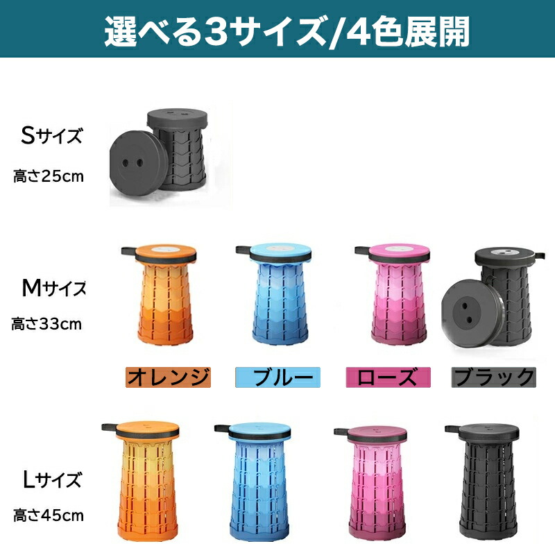折りたたみチェア 折りたたみ椅子 椅子 S(展開高さ25cm) M(展開高さ33cm) L(展開高さ45cm) オレンジ ブルー ローズ ブラック