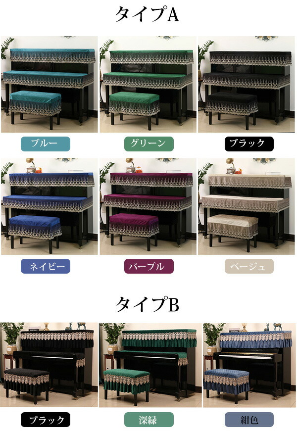 ピアノカバー 3点セット キーボードカ タイプA(ブルー) タイプA(グリーン) タイプA(ブラック) タイプA(ネイビー) タイプA(ベージュ) タイプA(パープル) タイプB(ブラック) タイプB(深緑) タイプB(紺色) 一人用(56*35cm) 二人用(76*35cm)