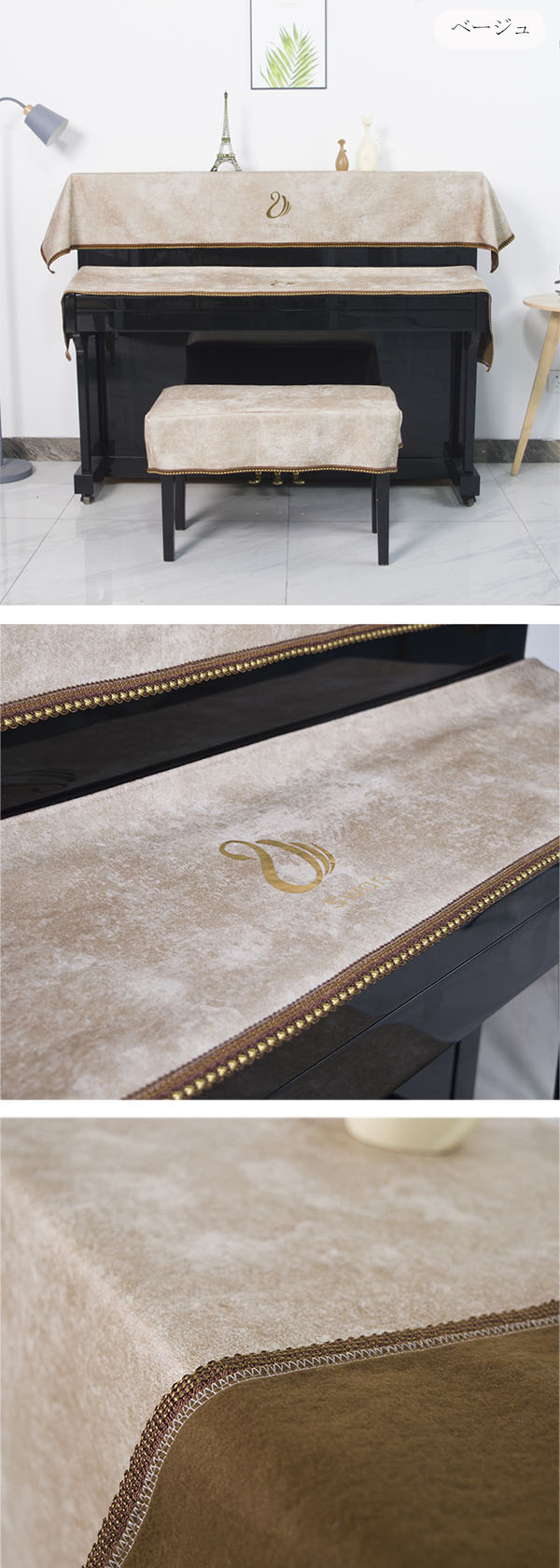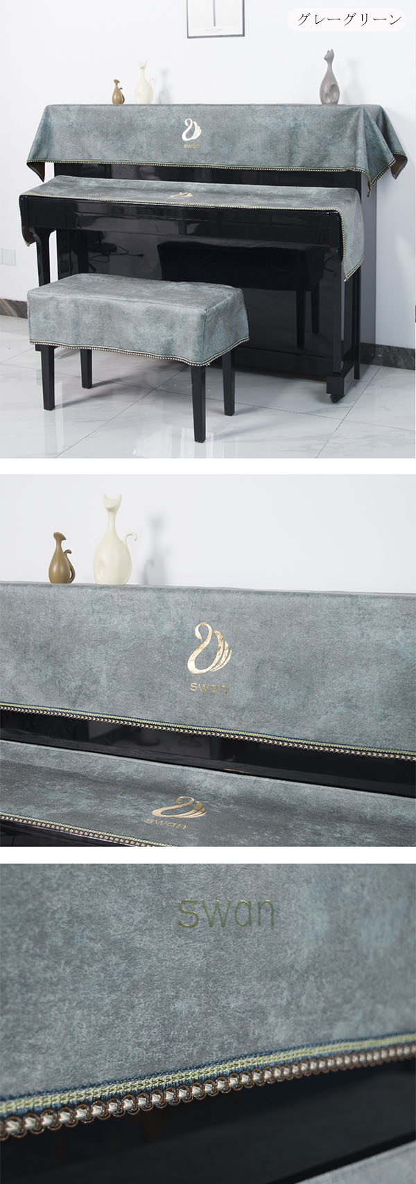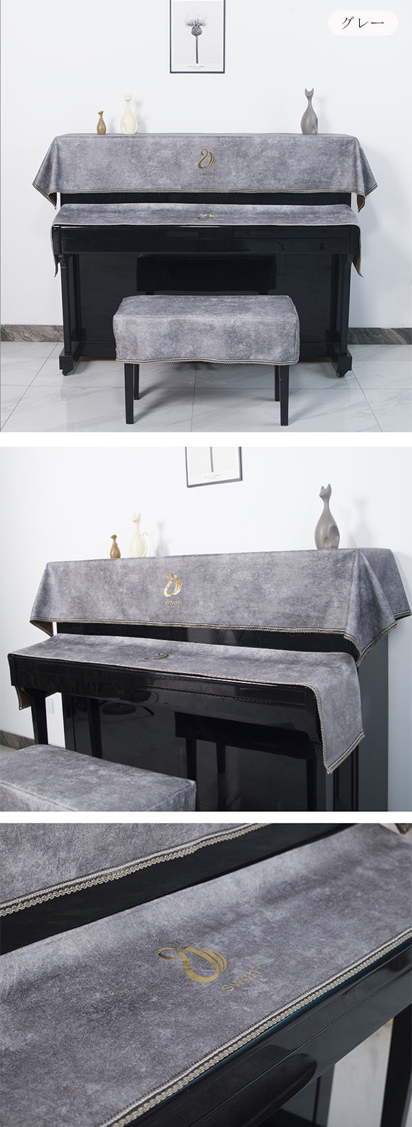 ピアノカバー 3点セット キーボードカ ネイビー グレー グレーグリーン 一人用(55*35cm) 二人用(75*35cm)