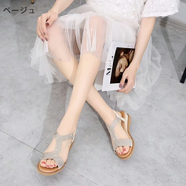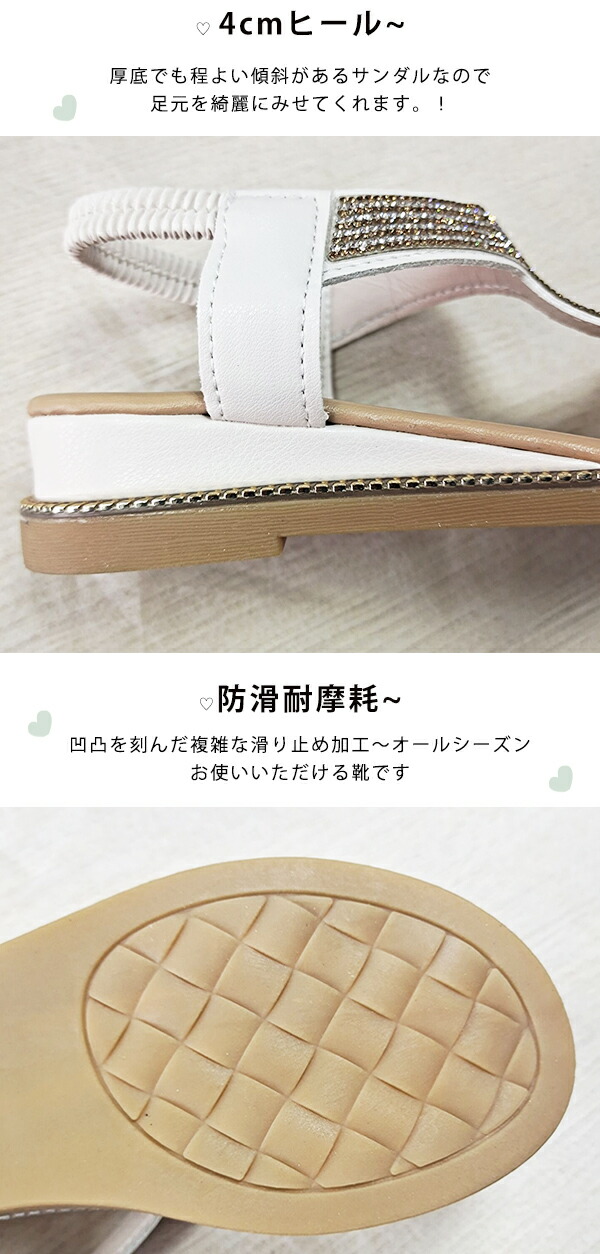 \10日限定10%OFFクーポン+P5倍/サンダル 歩きやすい レディース 厚底サンダル 4cmヒール 楽ちん煌めきサンダル ビジューサンダル ビーチサンダル ローヒール 細ストラップ 痛く フラット