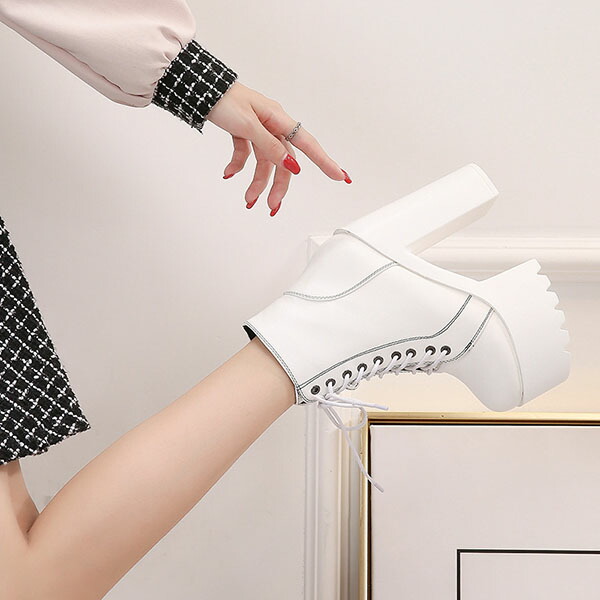 ショートブーツ レースアップブーツ 厚 レディース靴 ブーティ 続々登場 ブラック ホワイト 34(内寸22cm) 35(内寸22.5cm) 36(内寸23cm) 37(内寸23.5cm) 38(内寸24cm) 39(内寸24.5cm)