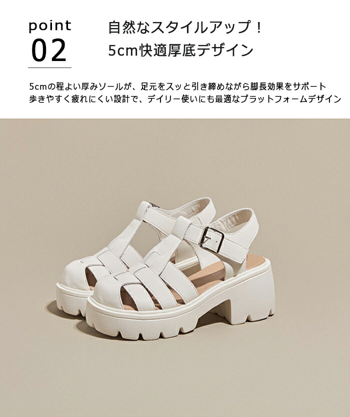 厚底サンダル グルカサンダル サンダル 靴 人気 ホワイト ブラック 35(内寸22.5cm) 36(内寸23cm) 37(内寸23.5cm) 38(内寸24cm) 39(内寸24.5cm) 40(内寸25cm)