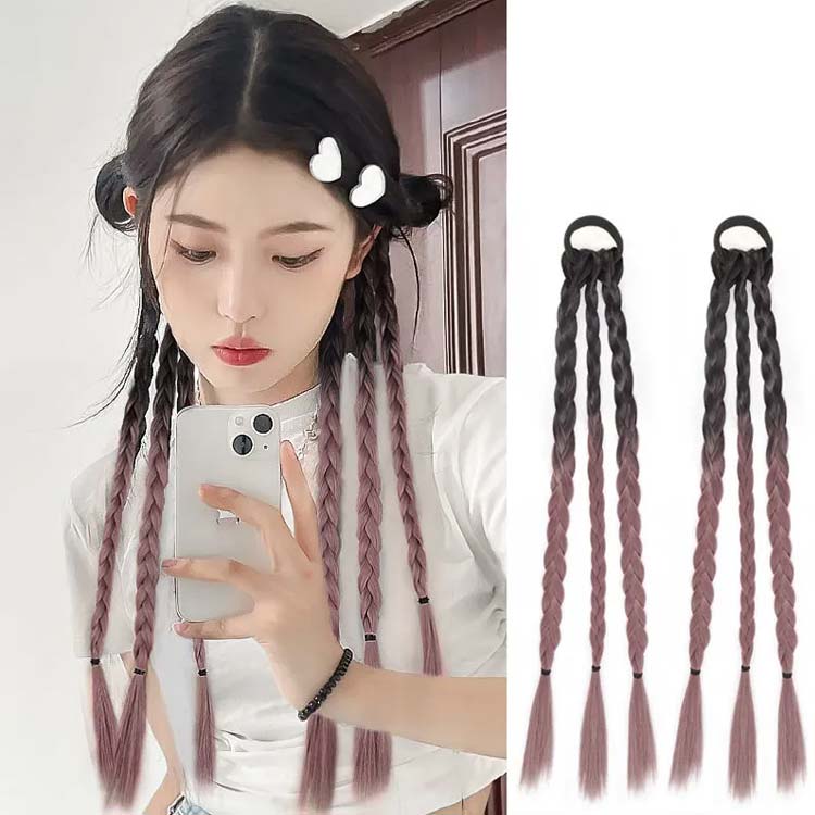 キッズ エクステ 三つ編み エクステン ウィッグ つけ毛 エクステンション 人気 黒茶色×ピンク 黒茶色×ライトパープル 黒茶色×グレー 黒茶色×ブルー ブラック 黒茶色 ダークブラウン ライトブラウン