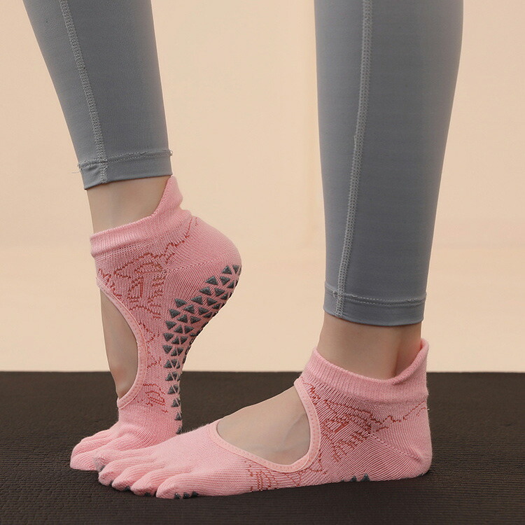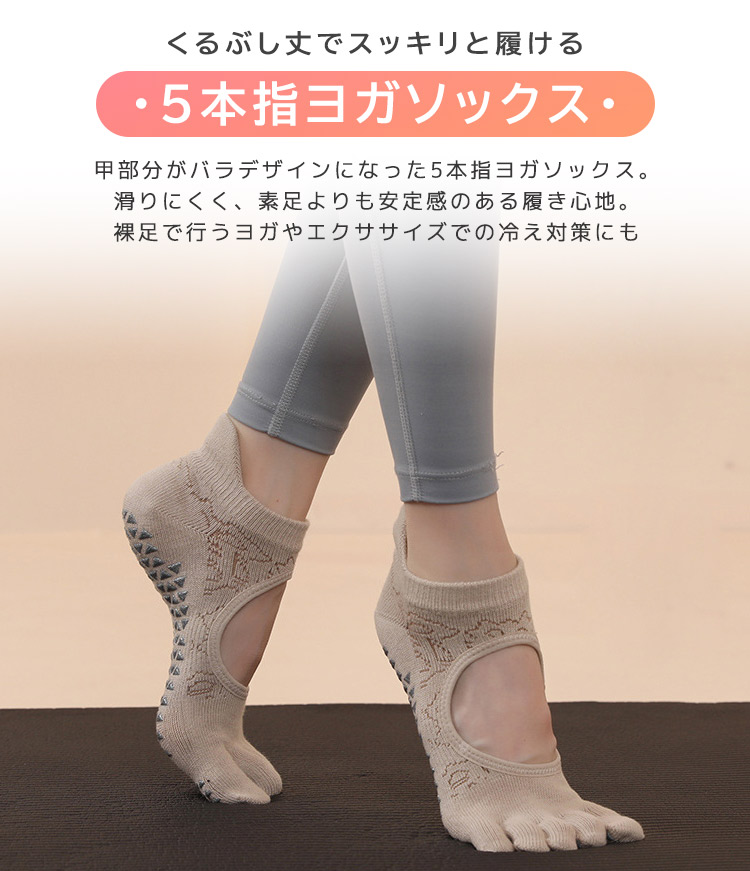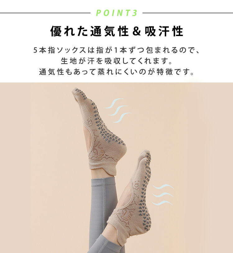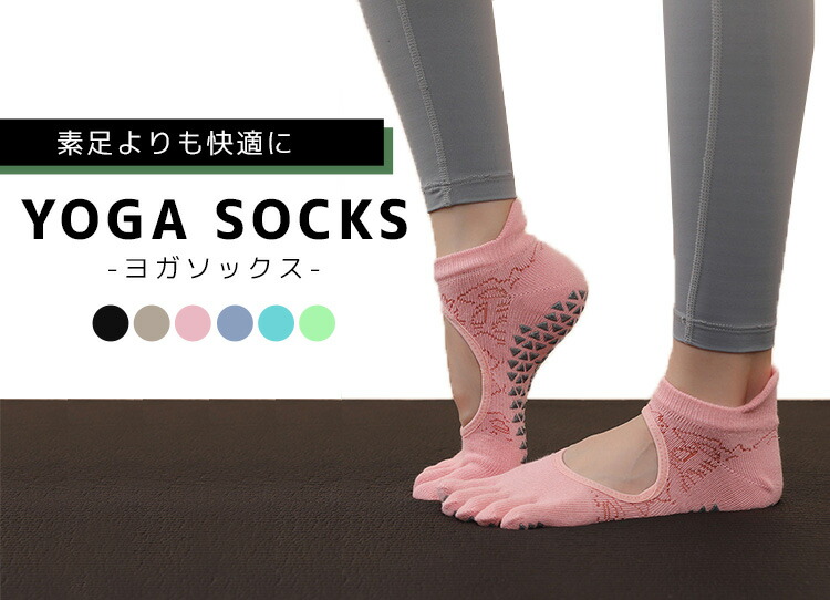 ヨガソックス 5本指 滑り止め 靴下 ブラック ベージュ ピンク サックスブルー ターコイズ ライトグリーン