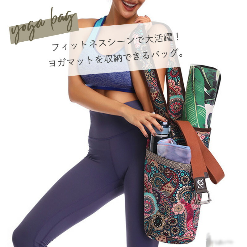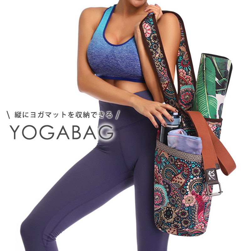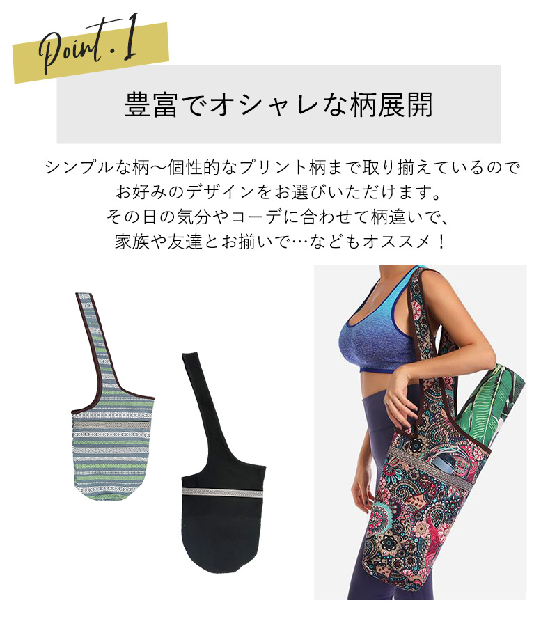 ヨガバッグ トート ヨガマット 縦型 ヨガ ピラティス マットバッグ 通販 ブラック シェブロン エスニックボーダー ネイビー×フラワー グリーン×フラワー オレンジ×エスニック