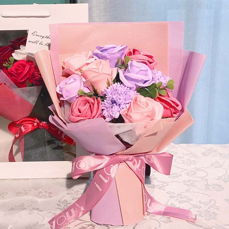 ソープフラワー 彼女 新生活 ブーケ レッド ブルー ピンク グリーン パープル