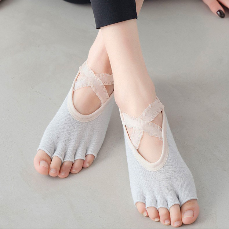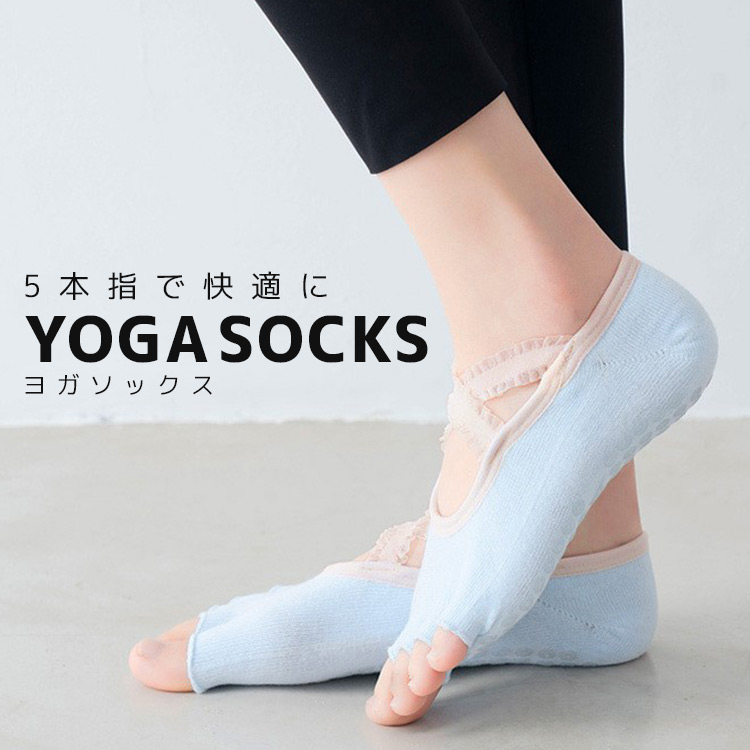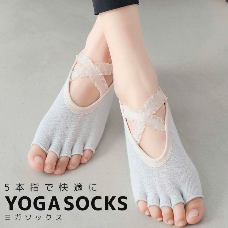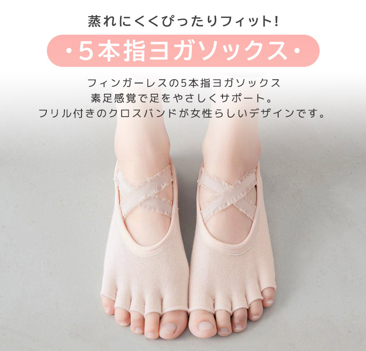 ヨガ ソックス 5本指 滑り止め 靴下 レディース フィンガーレス 指ぬき つま先なし かわいい カバーソックス フリル クロスバンド オールシーズン 運動 スポーツ ジム フィッ トレーニングウェア