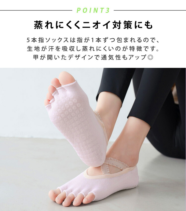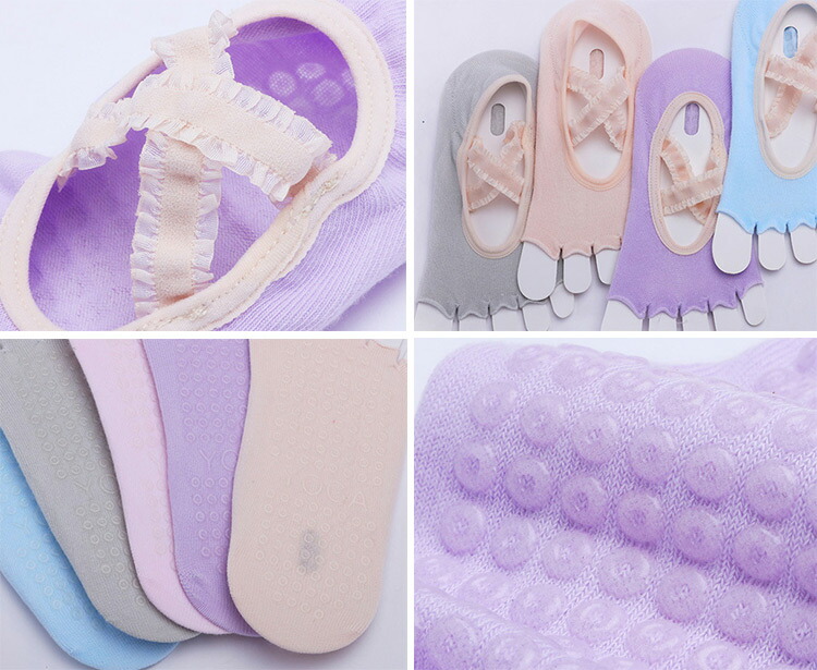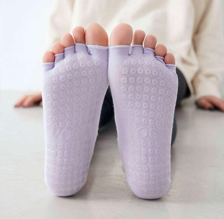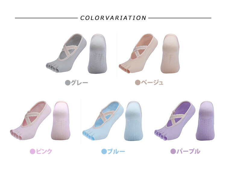 ヨガ ソックス 5本指 滑り止め 靴下 グレー ベージュ ピンク ブルー パープル
