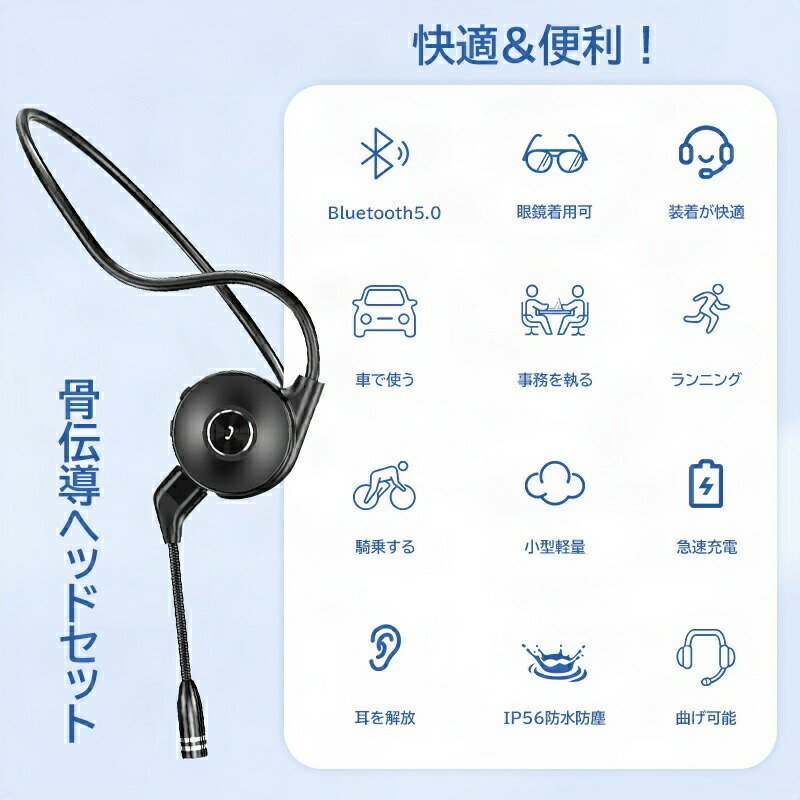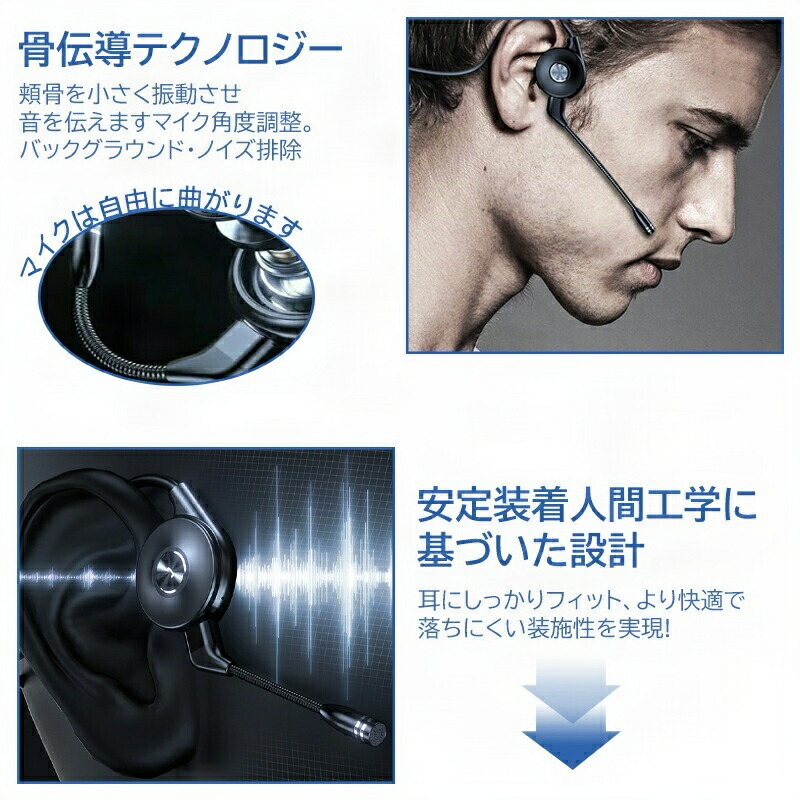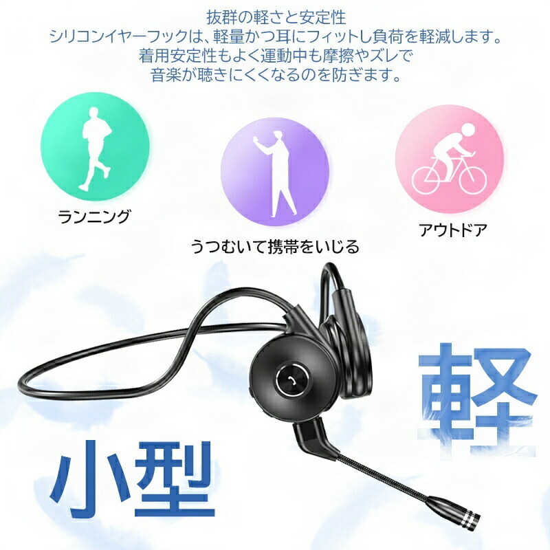 骨伝導 ヘッドホン Bluetooth5.0 耳に入れない 両耳 イヤホン 通話専用 マイク付き IP56防水 超軽量 Hi-Fi 高 ノイズキャンセリング