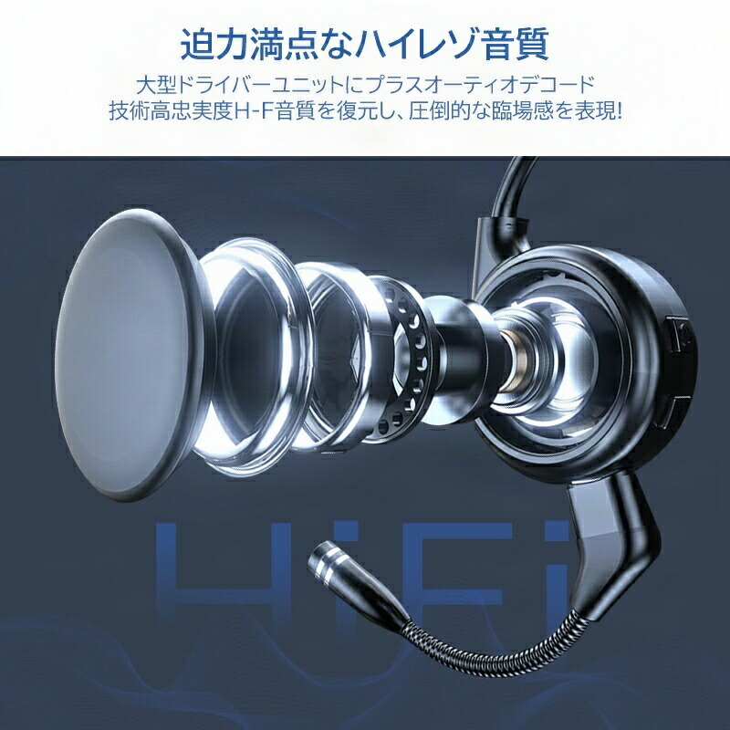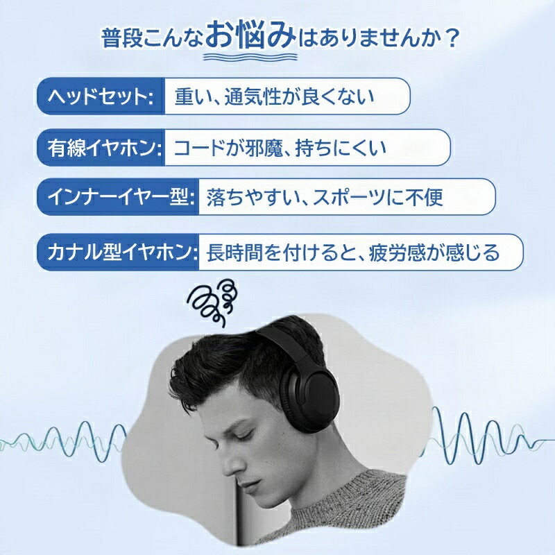 耳を塞がないオープンデザインのため、耳内が蒸れず痛みや伝染病、難聴のリスクも低減。わずか25gの超軽量設計で、眼鏡や帽子との併用も可能。長時間装着してもストレスを感じさせません。
