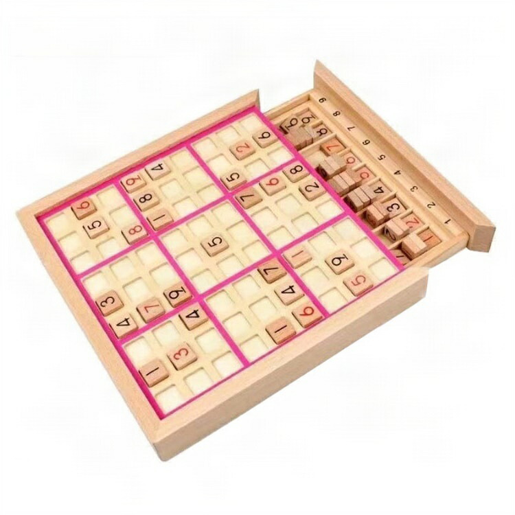 ※実寸はメジャー採寸の為、若干の誤差が生じる場合があります。 3段階の難易度で成長をサポート1台で3通りの数独が楽しめる多機能設計!4宮格(4x4): 未就学児や初心者向けの入門モード。6宮格(6x6): 小学生の算数力強化に最適な中級モード。9宮格(9x9): 大人も熱中する本格的な上級モード。数字ブロックは滑り出し式トレイで整理可能。途中で中断してもそのまま保存できます。自然素材のぬくもりと安全設計・深山林から採れた天然木を使用し、角の丸い加工でケガ防止・EU基準をクリアしたノンホルムアルデヒド塗料採用・引き出し付き収納BOX付属でパーツ紛失を防止世代を超えた使いみち3歳~6歳:数字認識・論理的思考の基礎作り・小学生:算数授業の補助教材として・大人:ストレス解消・認知機能維持に・シニア:認知症予防トレーニングツール