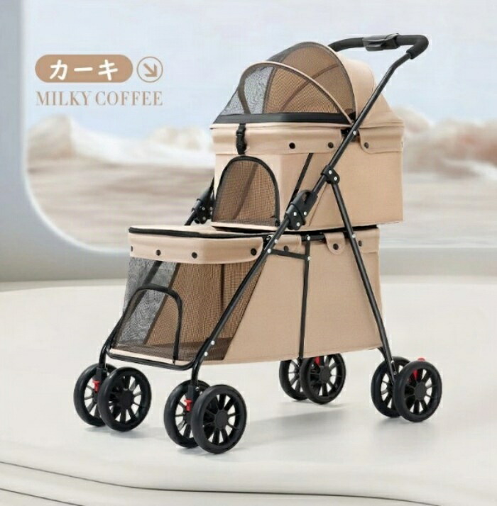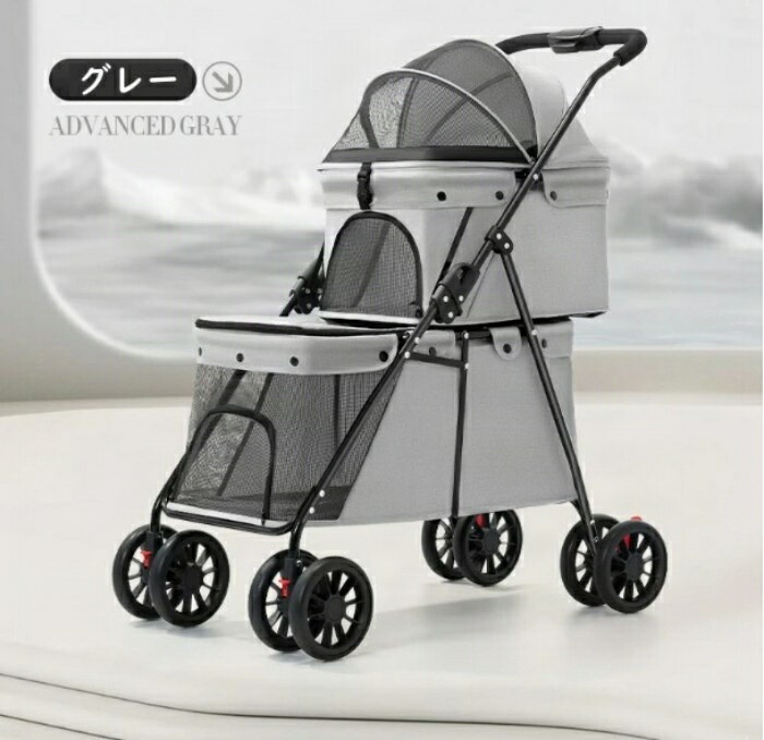 ペットカート 2段式 2階建て 多頭 ペット ペットグッズ 続々登場 グレー ブラック カーキ