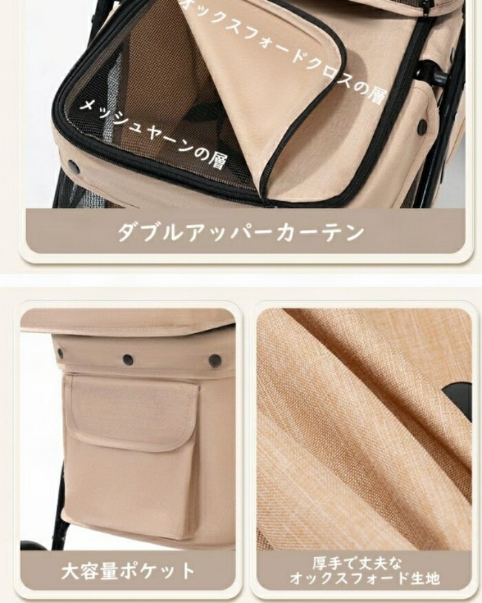 デザインは、グレー、ブラック、カーキの3色展開。シックで洗練されたカラーバリエーションからお好きな色をお選びいただけます。散歩やショッピング、旅行など、様々なシーンで活躍するこのペットカートで、ペットとの毎日をもっと素晴らしいものにしてみませんか。