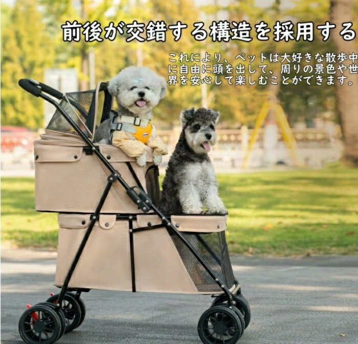 ペットカート 2段式 2階建て 多頭 多機能 多頭飼い 安定 防災用品 ペット用 耐荷重 小型犬 折り畳み 多頭用 豪華な4輪大型ペットカート 中型犬 簡単に収納 散歩 上下二段式 上下 便利