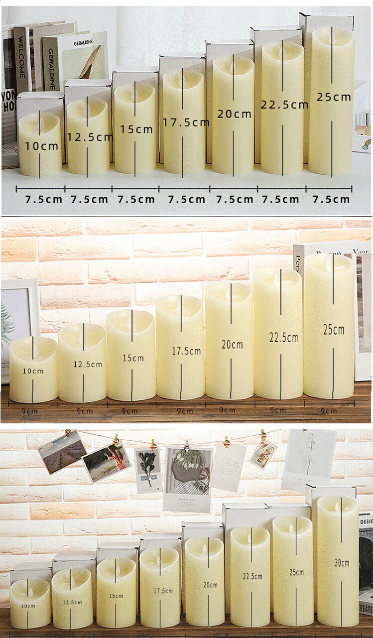 ゆれゆれ本物ろうそく LEDキャンドル 7.5*10cm 7.5*12.5cm 7.5*15cm 7.5*17.5cm 7.5*20cm 7.5*22.5cm 7.5*25cm 7.5*10/12.5/15cm(三点セット) 7.5*10/12.5/15/17.5/20cm(五点)