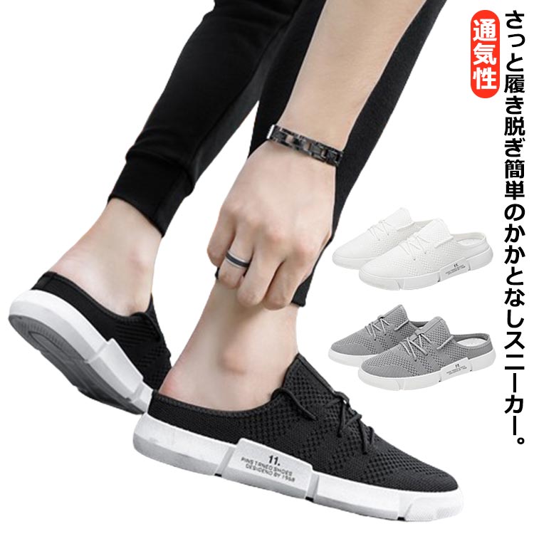 かかとなし スニーカー メンズ サボサ レディース靴 サンダル サボ 続々登場 ブラック ホワイト グレー 24.5cm 25cm 25.5cm 26cm 26.5cm 27cm