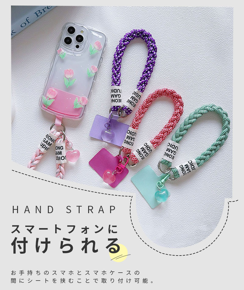 スマホ用ハンドストラップ ストラップ スマートフォン タブレット 新作 ラベンダー ブラック ネイビー ベビーピンク ミント パープル グリーン ピンク ベージュ レッド