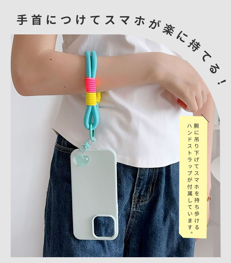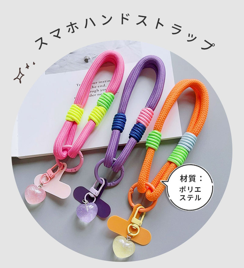 スマホ用ハンドストラップ iPhone スマートフォン 携帯電話用アクセサリー ストラップ マスコット 新作 ブラック ブルー カーキ パープル オレンジ イエロー ライトブルー ピンク ミント ローズ