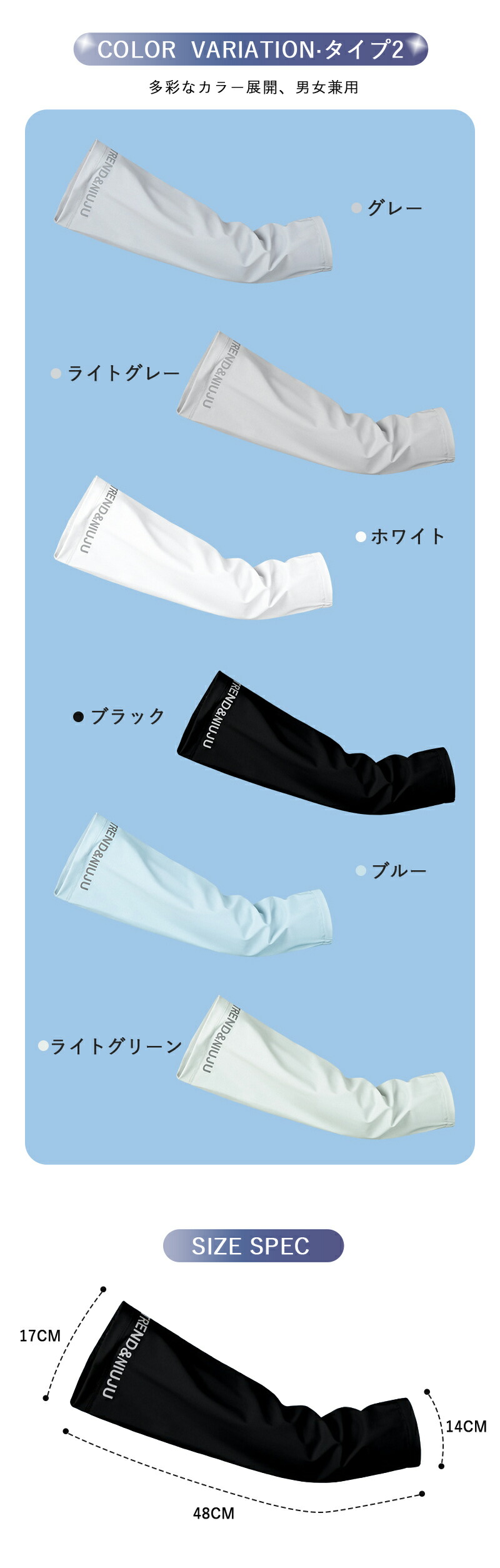 【どんなコーディネートにも合う 実用性】シンプルなデザイン,豊富なカラーバリエーション、カジュアルからスポーティーまでどんな服装にもコーディネートしやすい腕カバーです。