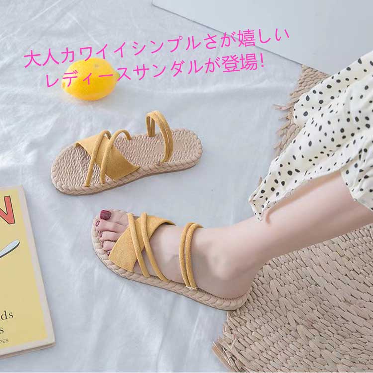 限定再販 サンダル レディース ストラ 靴 豊富 イエロー オフホワイト ブラック 35(22.5cm) 36(23cm) 37(23.5cm) 38(24cm) 39(24.5cm) 40(25cm)