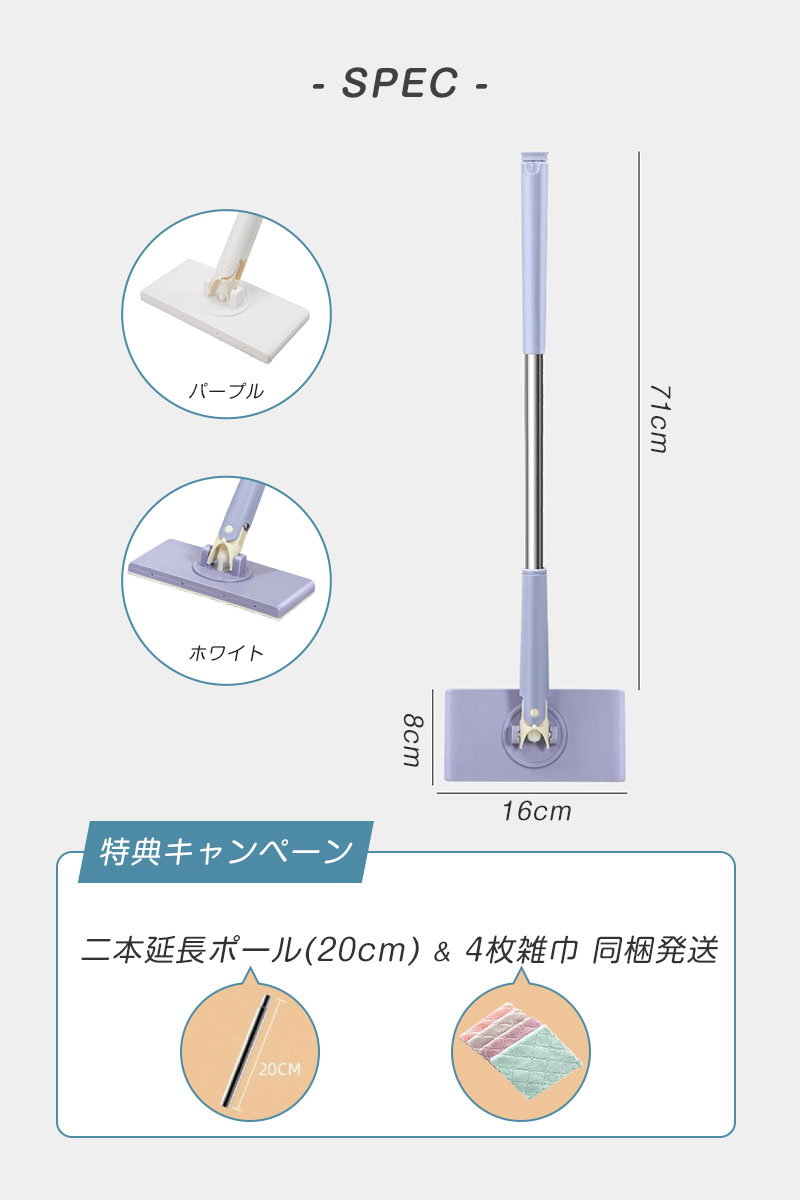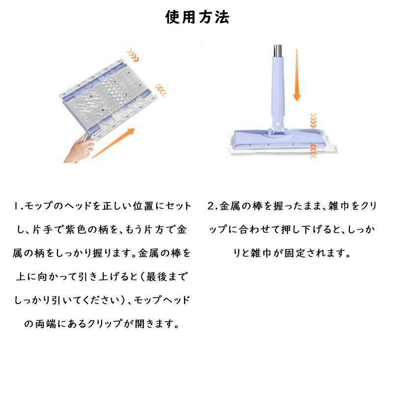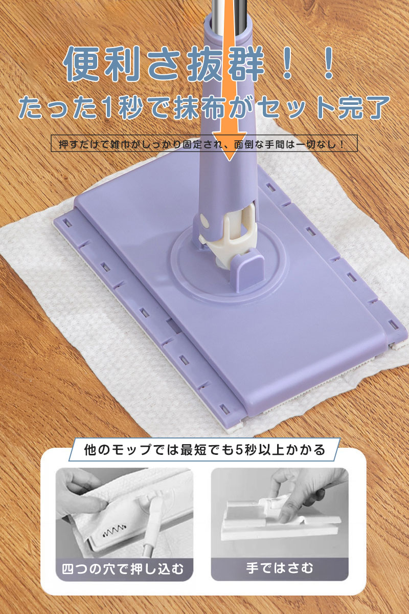 雑巾 挟む モップ 乾湿両用モップ 雑 掃除用品 モップ 通販 パープル ホワイト