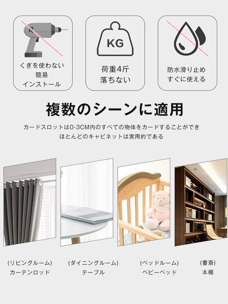 【簡単な設置】工具なしで簡単に設置可能。壁に穴を開ける必要がない為、賃貸住宅にお住まいの方におすすめ。