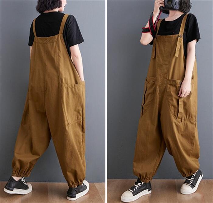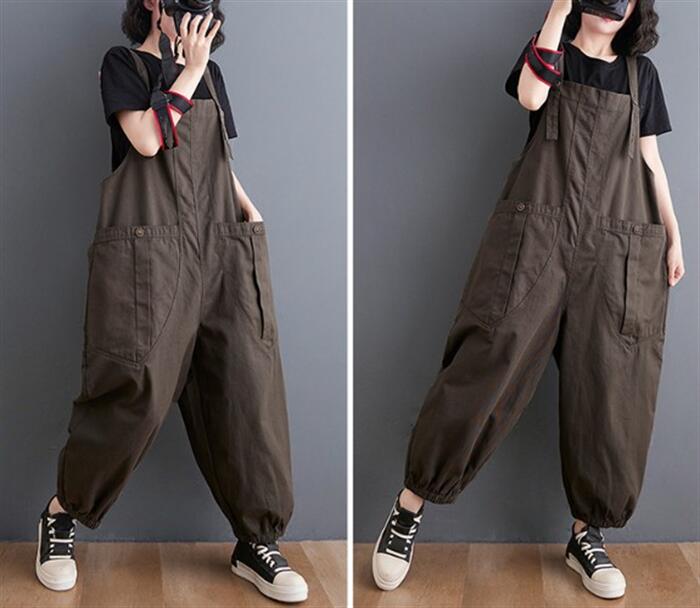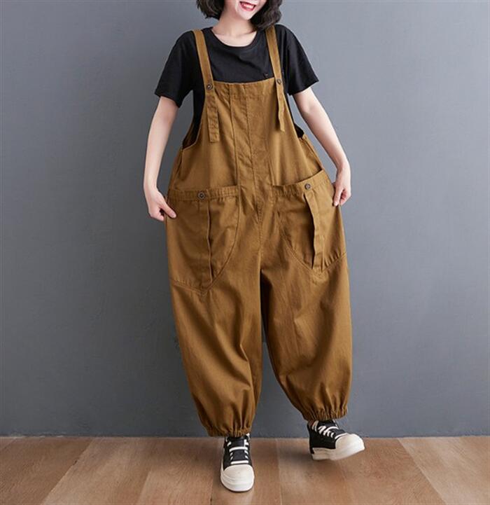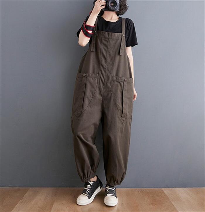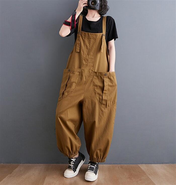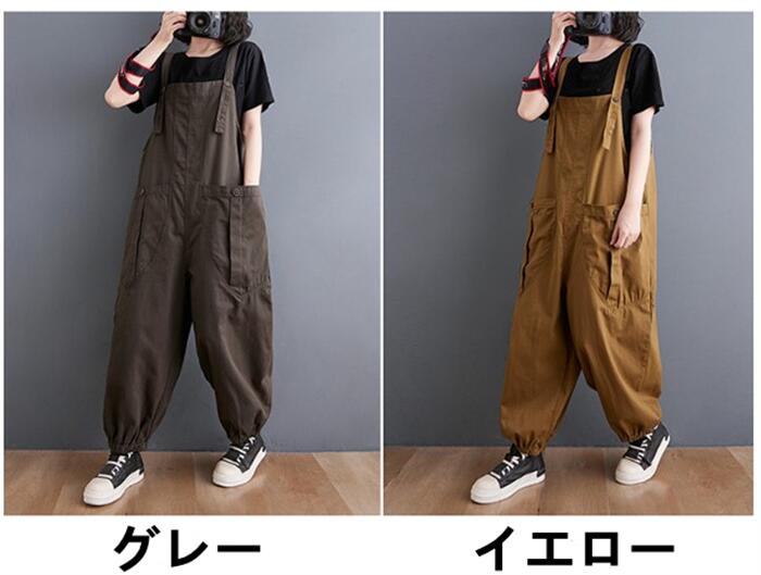サロペット 肩紐 綿 作業着 仕事着用 大きいポケット 調節可能 大きいサイズ ゆったり 畑用 農業 薄手 大人 オールインワン サルエルパンツ カジュアル オーバーオール パンツ マタニ レディース