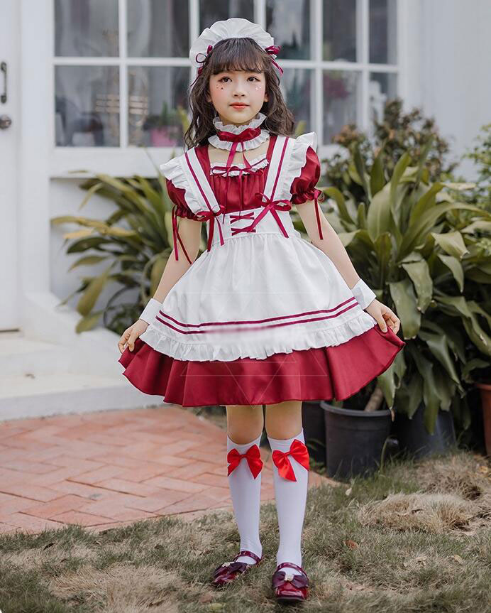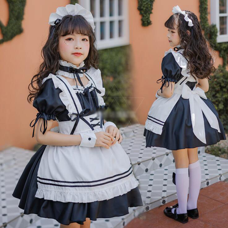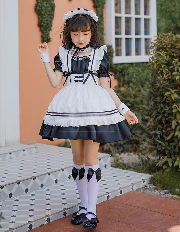 子供メイド服 子どもワンピース 女の子コスチューム キッズ半袖ワンピ メイドコスプレ 定番 可愛いコスチューム コスプレ衣装