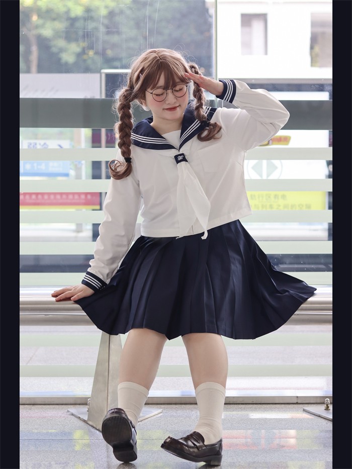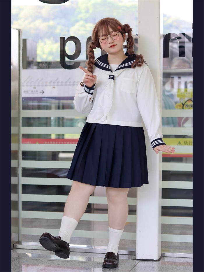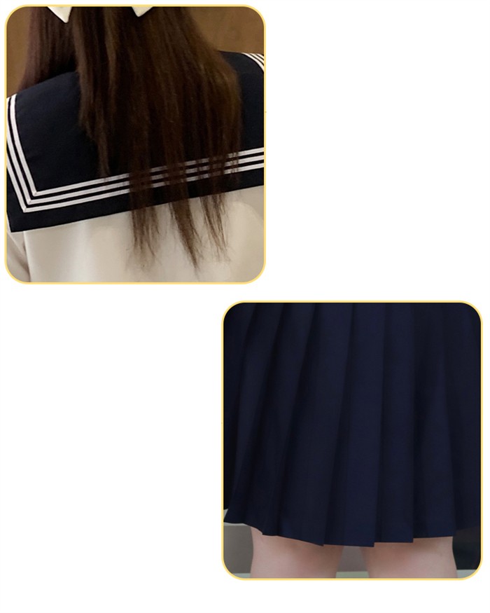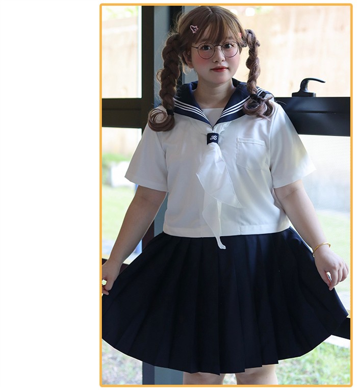 セーラー服 上下セット レディース 大きいサイズ 制服風 コスプレ JK風 コスチューム 半袖 長袖 3点セット 2L~8L 選べるスカート丈43cm 48cm 学園祭 イベント 撮影 仮装 文化祭