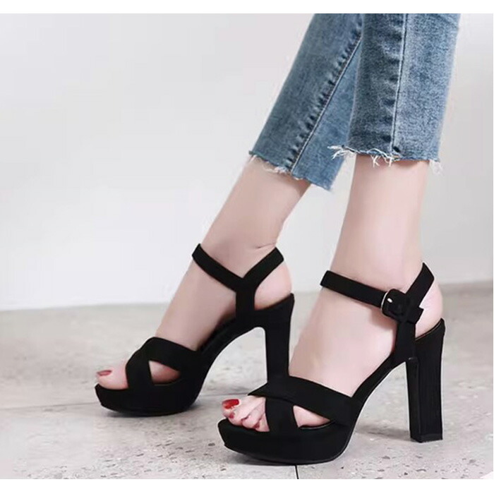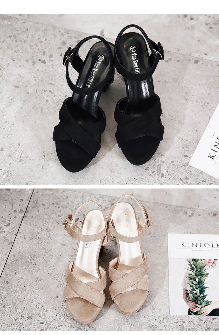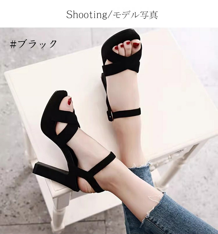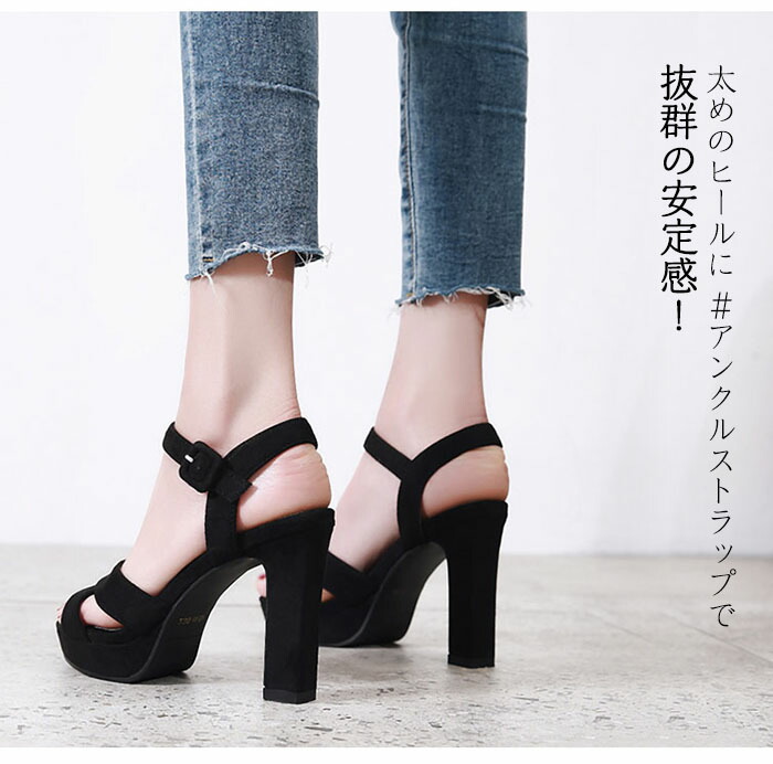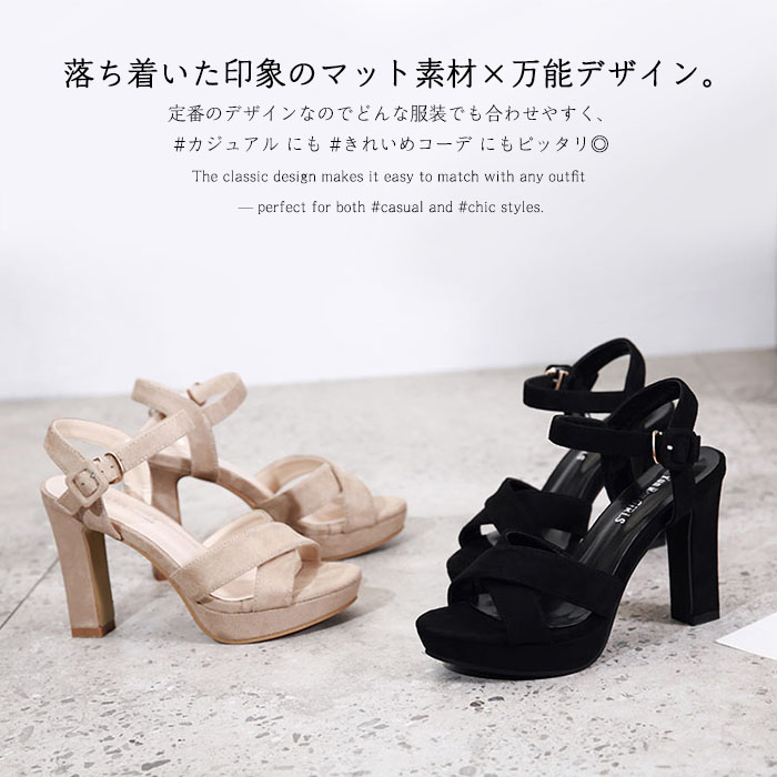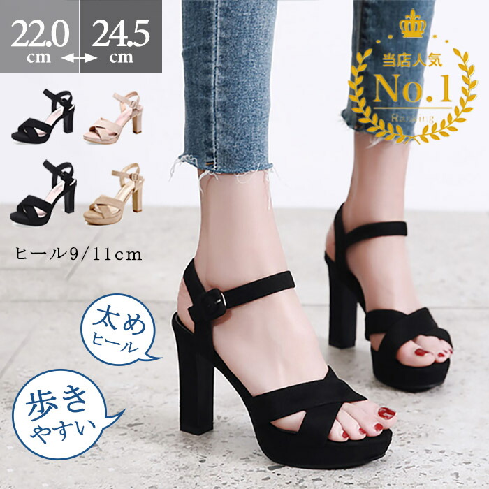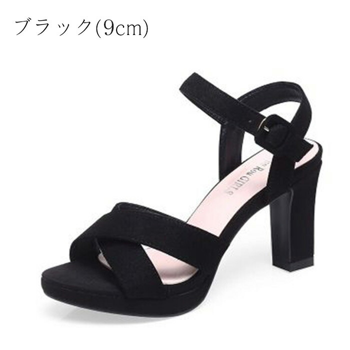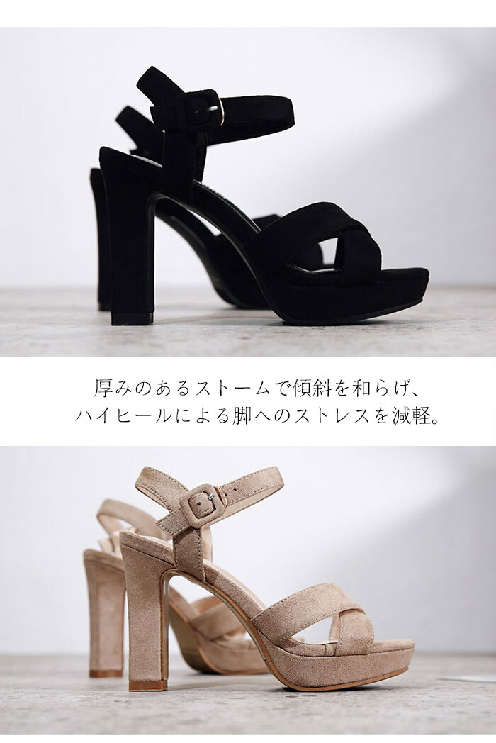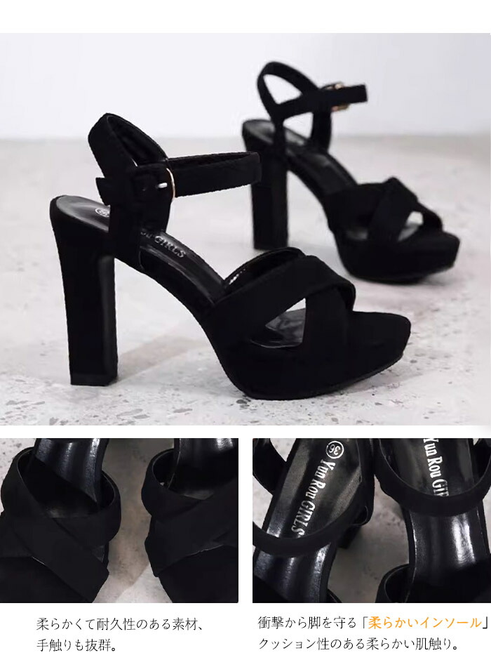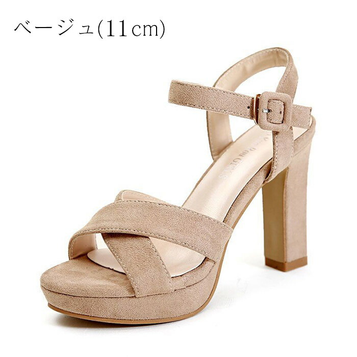サンダル 厚底 ハイヒール スエード 太ヒール ヒールサンダル ストラップ クロス 11センチ レディース 靴 歩きやすい 疲れにくい 高め 小さいサイズ かかとあり 大人 春夏 ブラッ フェミニン