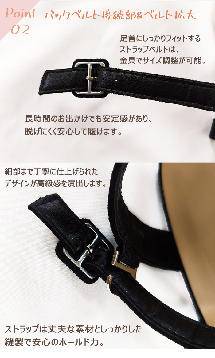 太めのヒールに #アンクルストラップ で抜群の安定感!